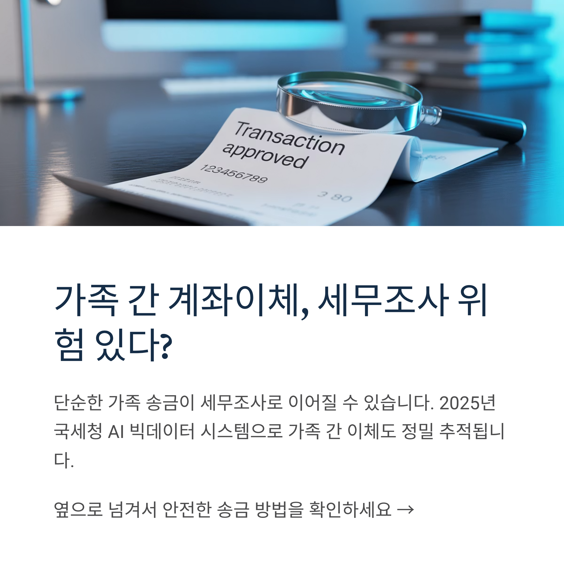 부모님께 용돈을 드리거나 자녀에게 학비를 보내는 평범한 가족 간 송금이 세무조사로 이어질 수 있다는 사실을 알고 계시나요? 2025년 현재 국세청의 AI 빅데이터 분석 시스템이 강화되면서, 가족 간 계좌이체도 더욱 정밀한 세무 추적 대상이 되고 있습니다. 단순히 "가족이니까 괜찮겠지"라는 생각으로 송금했다가 예상치 못한 증여세 폭탄을 맞을 수 있습니다.