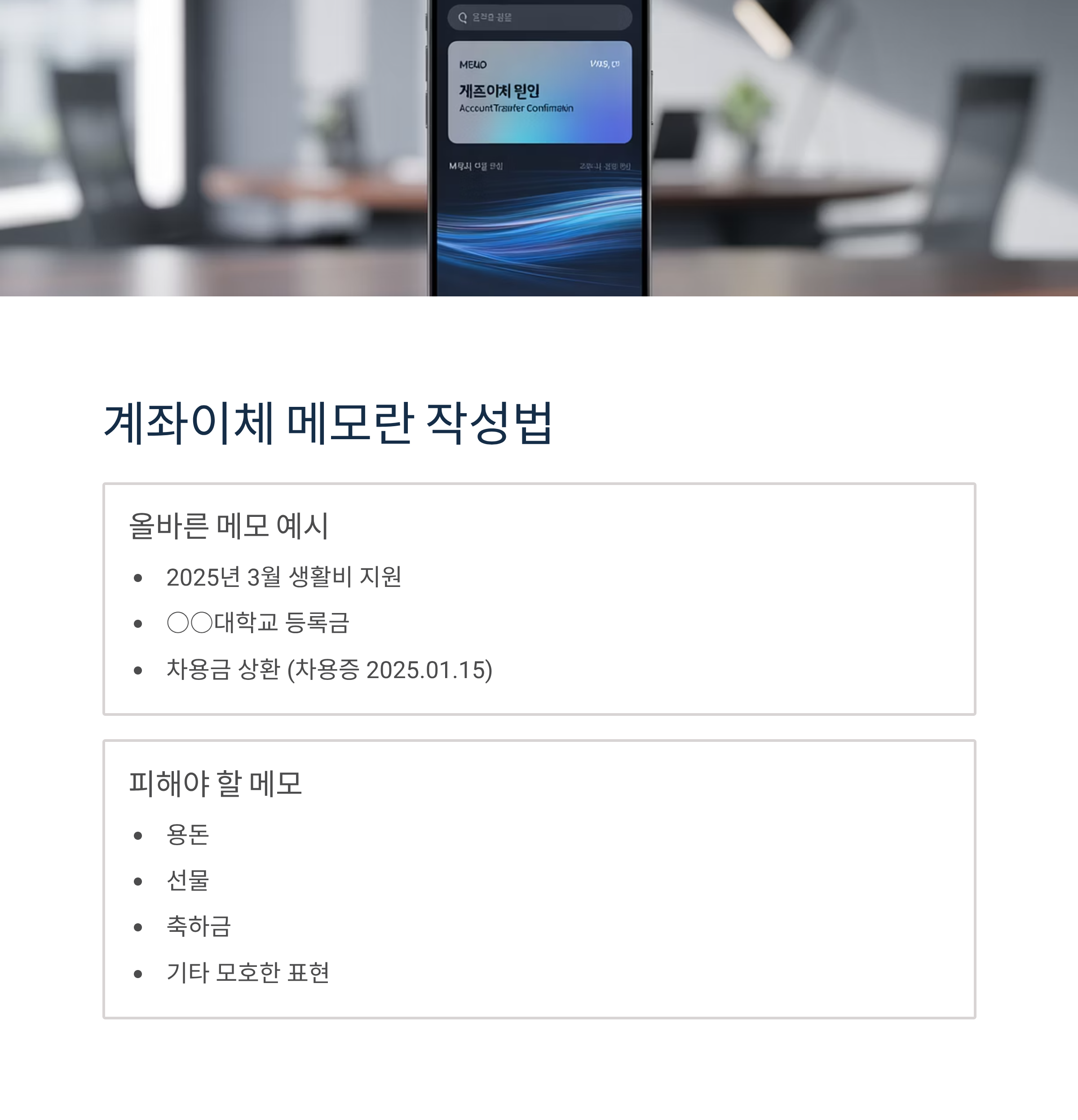 계좌이체 시 메모란 작성법과 목적 명시 요령
