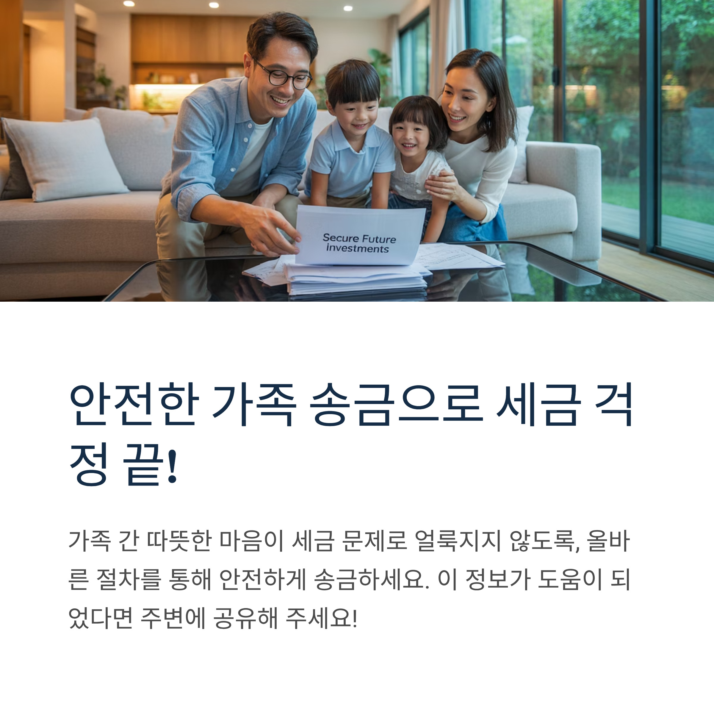 가족 간의 따뜻한 마음이 세금 문제로 얼룩지지 않도록, 올바른 절차를 통해 안전하게 송금하시길 바랍니다.
