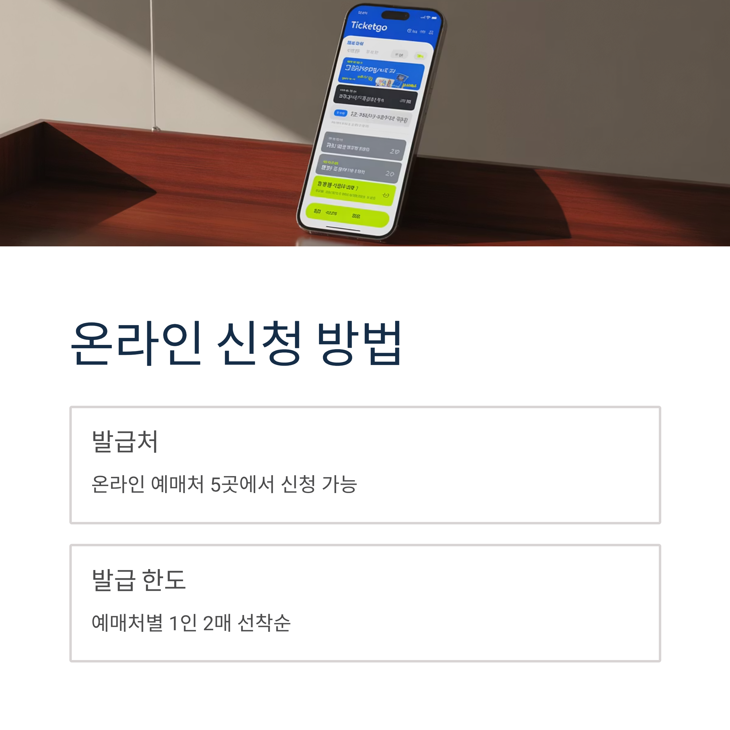 - 발급 한도: 예매처별 1인 2매 선착순