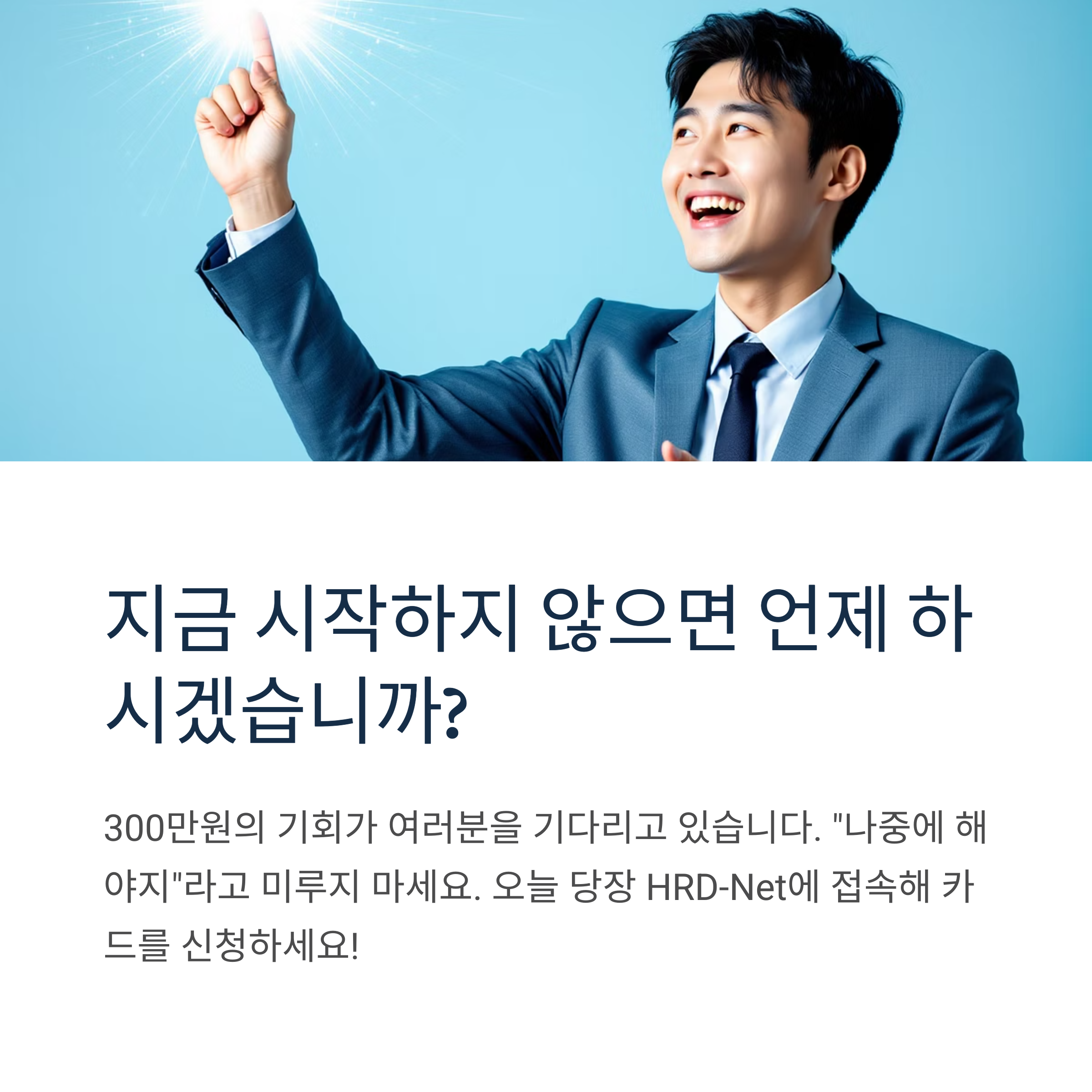 변화는 지금 이 순간부터 시작됩니다. 오늘 당장 HRD-Net에 접속해서 카드 신청을 시작해보세요. 3개월 후, 6개월 후의 여러분은 지금의 결정에 분명히 감사할 것입니다.