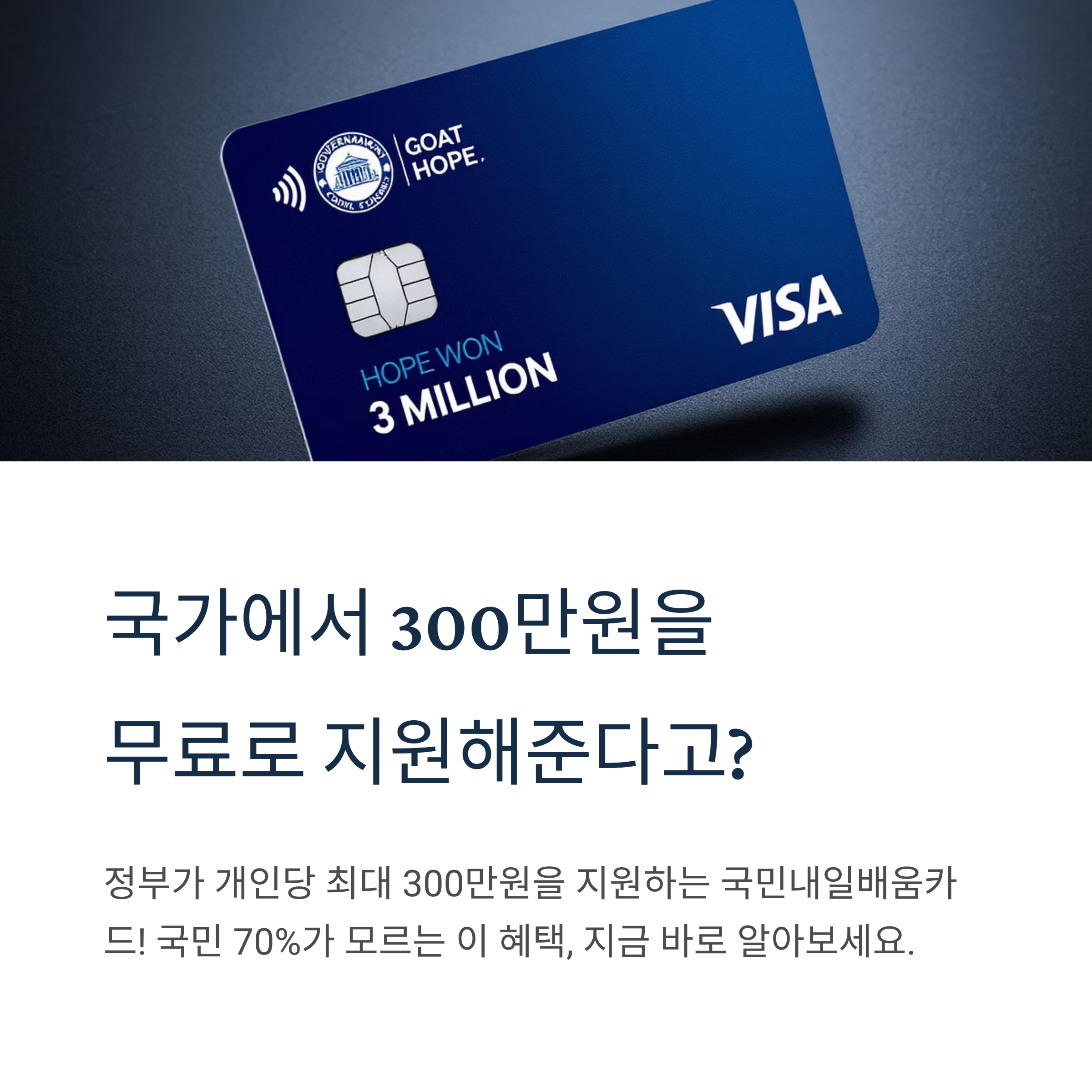 "정부에서 개인당 최대 300만원을 지원해주는 카드가 있다면 믿으시겠어요?" 많은 분들이 이런 말을 들으면 "설마, 그런 좋은 일이 어디 있어?"라고 생각하실 겁니다. 하지만 이것은 100% 사실입니다.