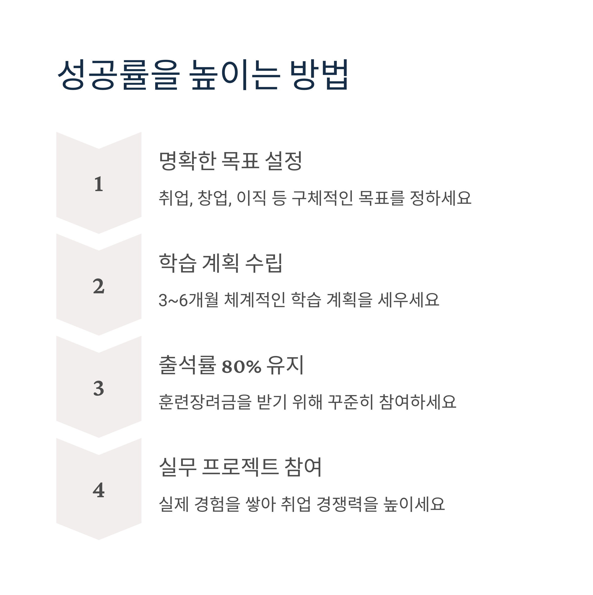 - 출석률 80% 이상 유지 (훈련장려금 수령)