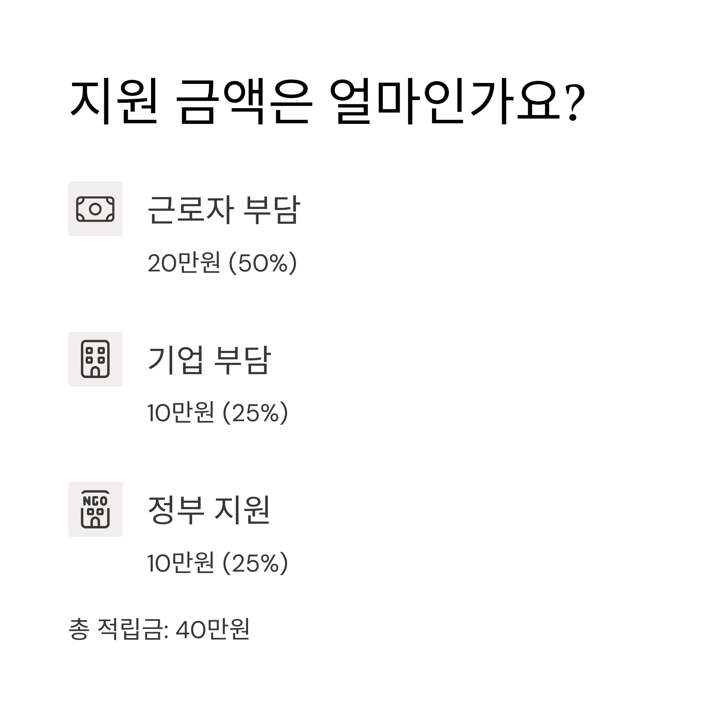 • 근로자 부담: 20만원 (50%)