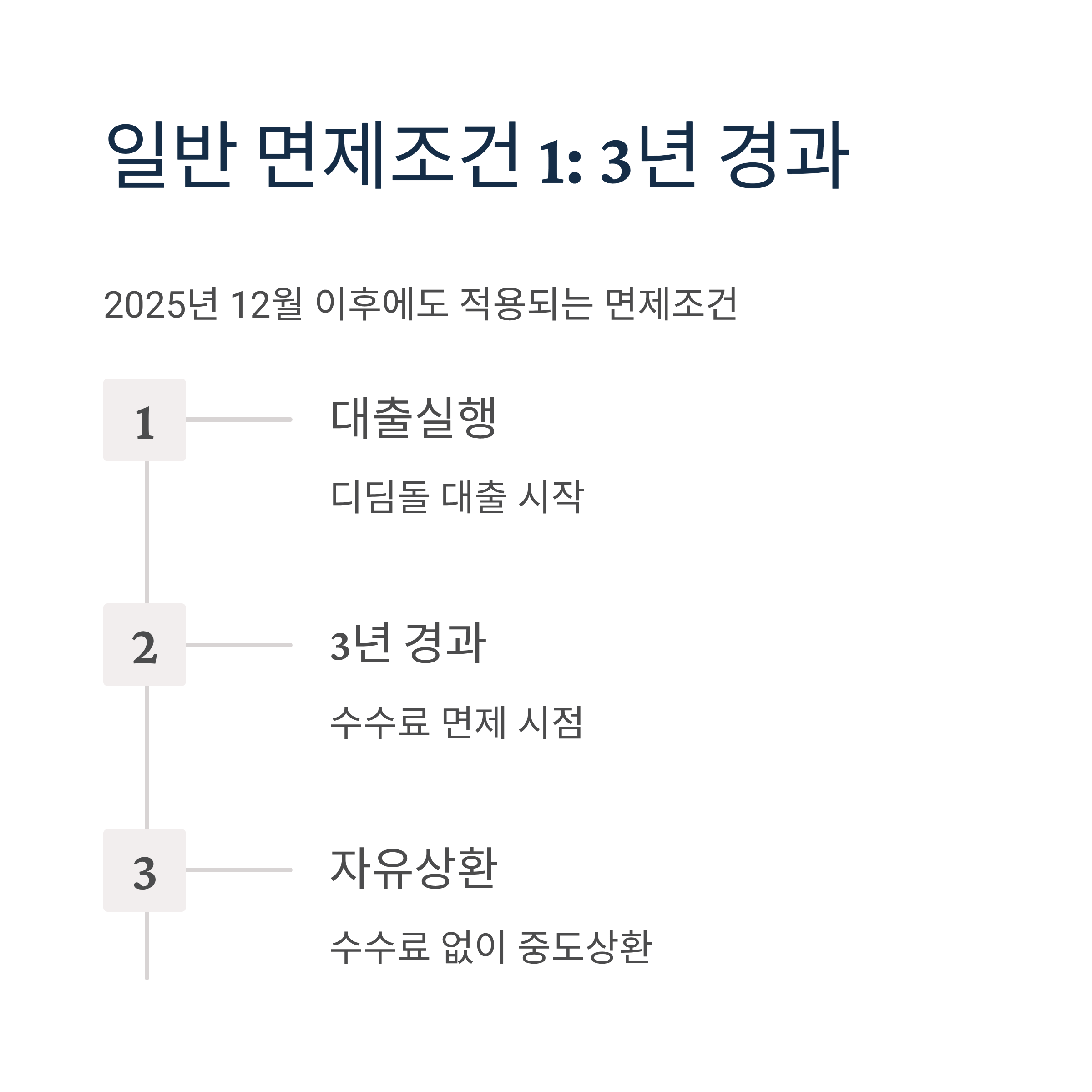 2025년 12월 이후에도 다음 조건에 해당하면 중도상환수수료가 면제됩니다: