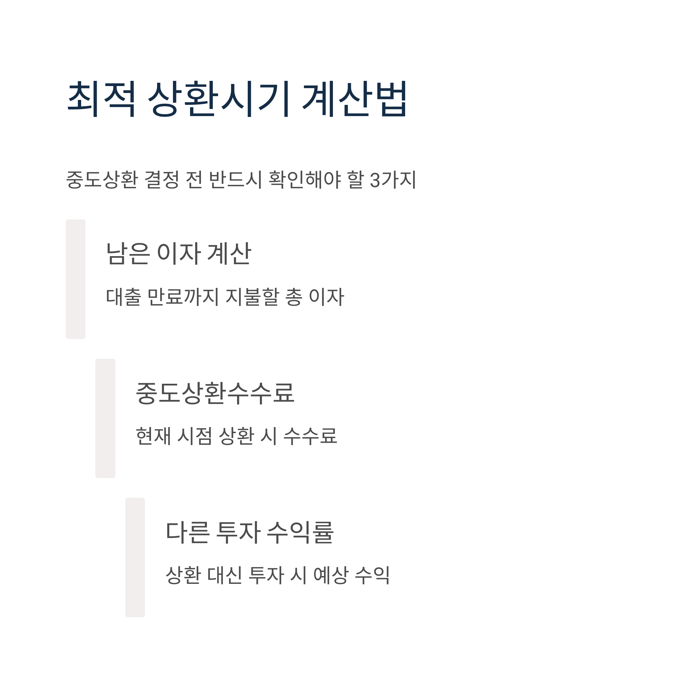 중도상환을 고려할 때는 다음을 계산해보세요: