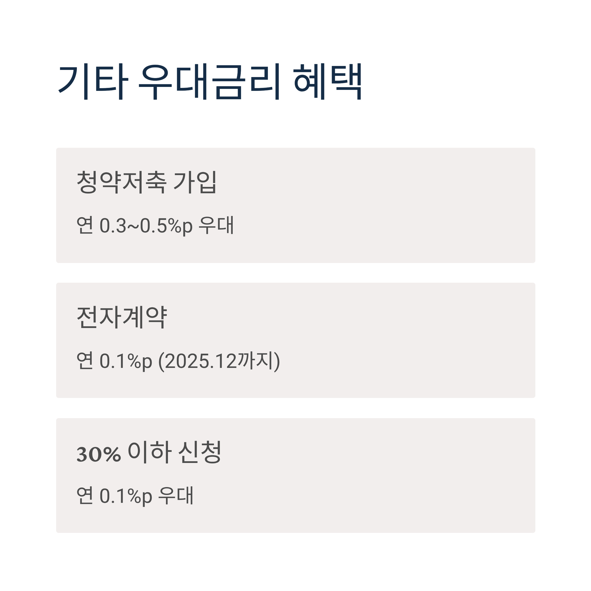 - 청약저축 가입자: 연 0.3%p~0.5%p