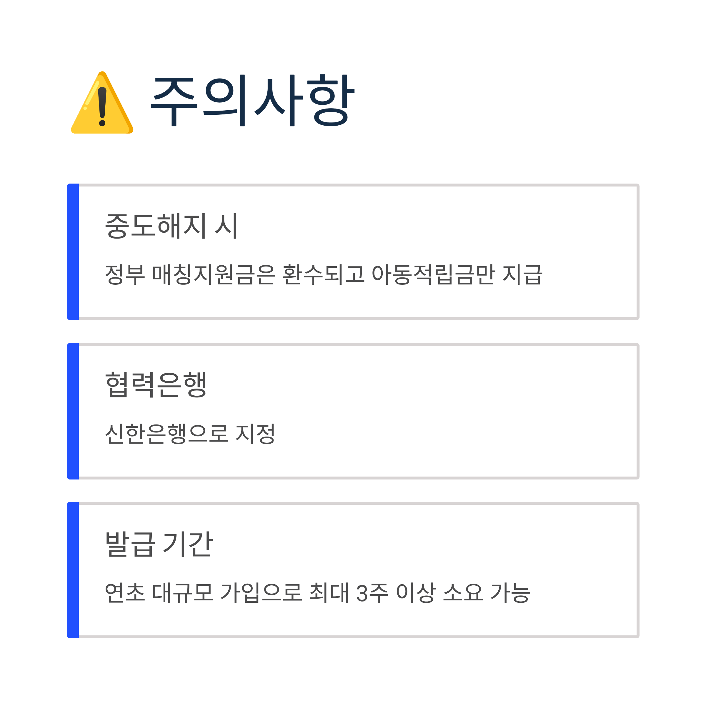 - 중도해지 시 정부 매칭지원금은 환수되고 아동적립금만 지급