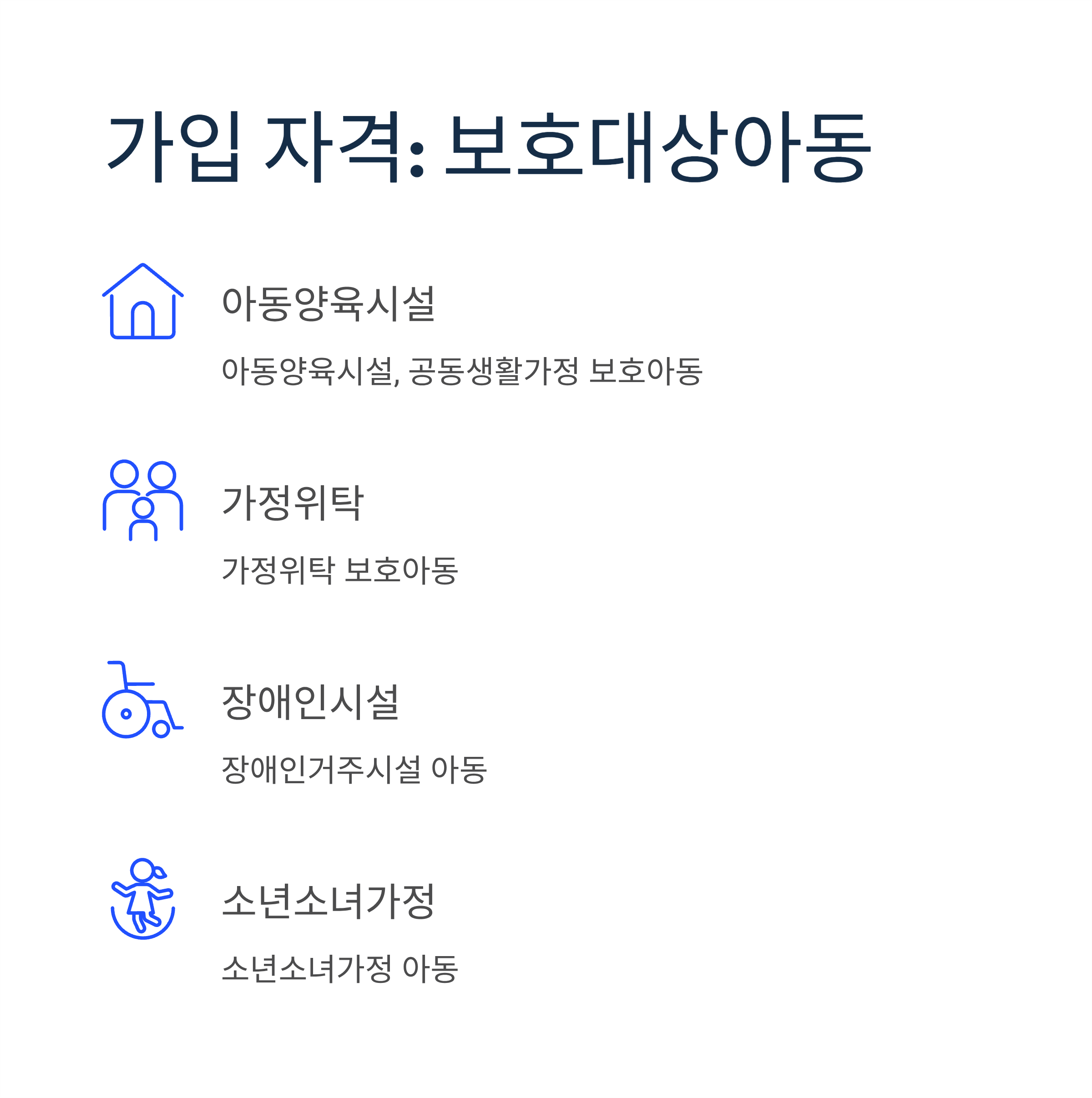 만 18세 미만 아동 중 다음에 해당하는 경우 가입 가능합니다:
