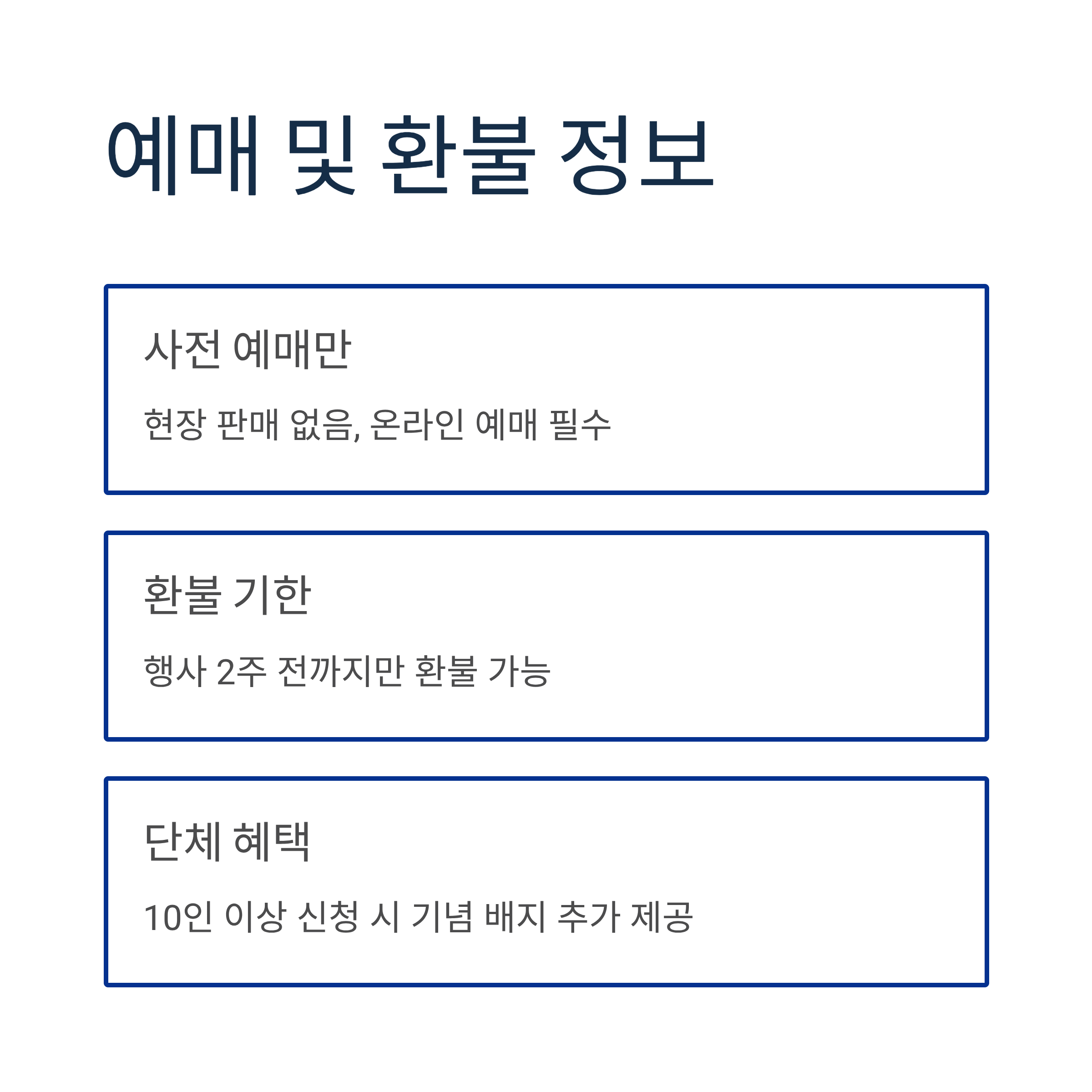- 전액 환불: 날씨, 안전상 문제 등으로 행사가 취소될 경우