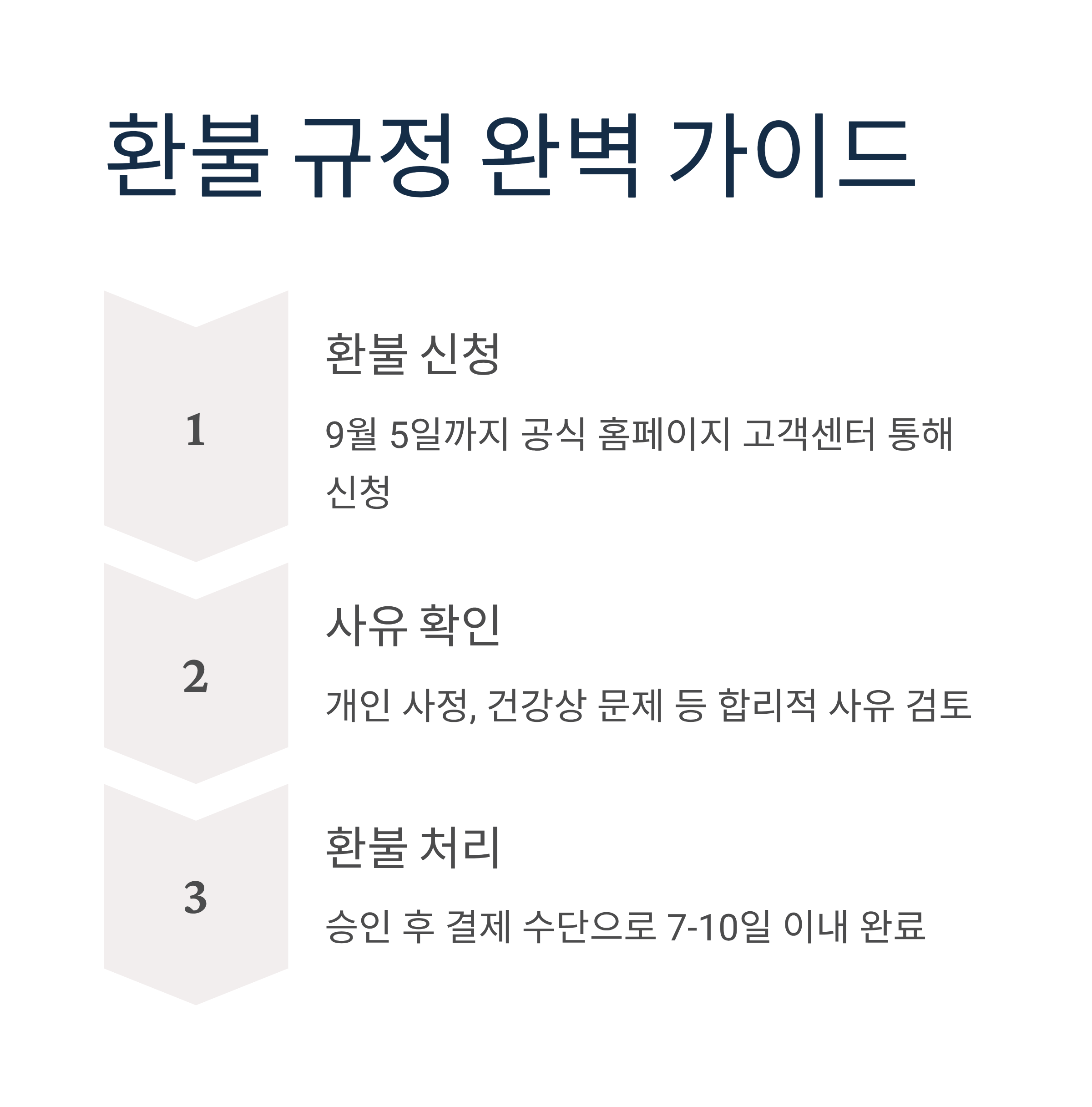 - 환불 처리: 승인 후 결제 수단으로 7-10일 이내 환불 완료