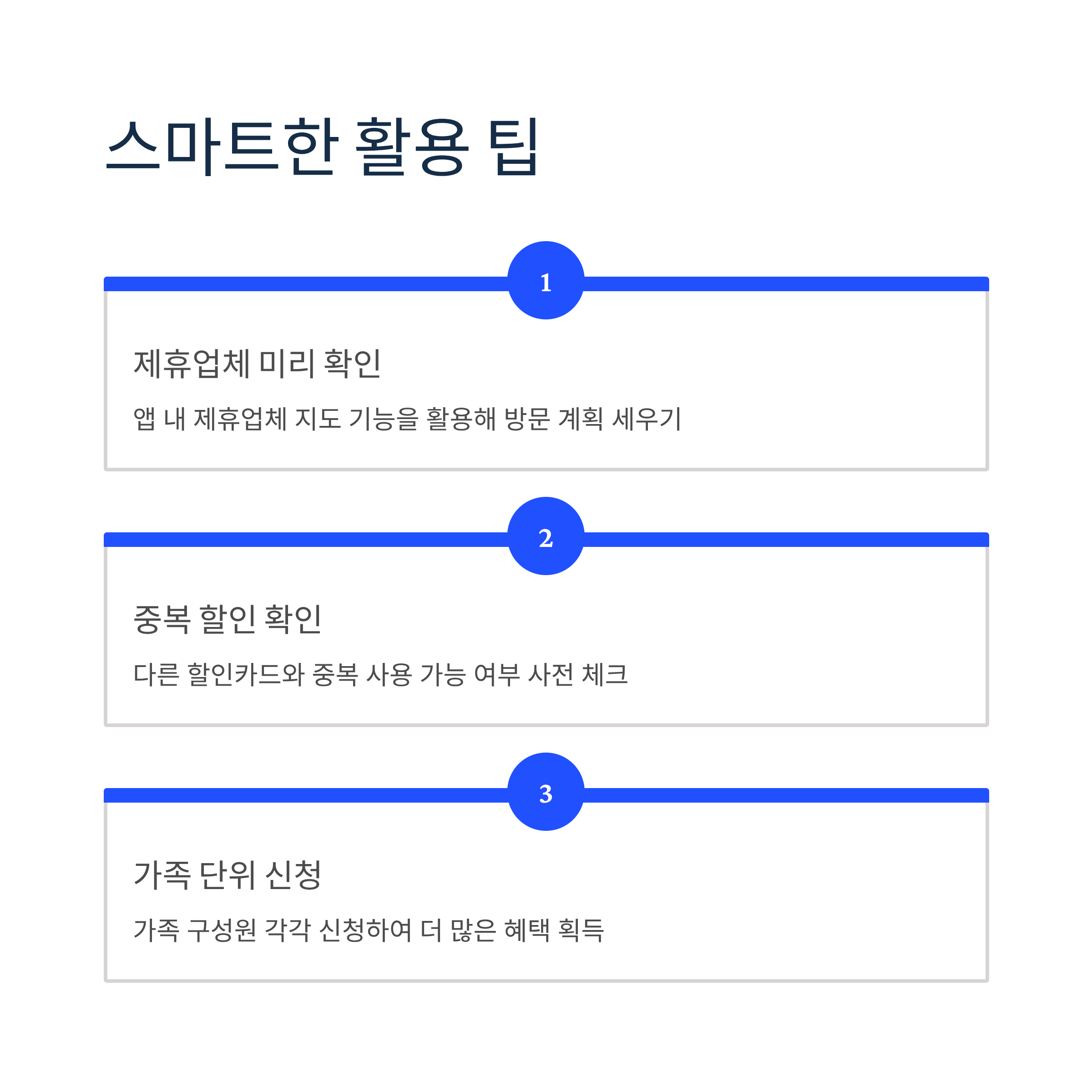 - 중복 할인 확인: 다른 할인카드와 중복 사용 가능 여부 확인