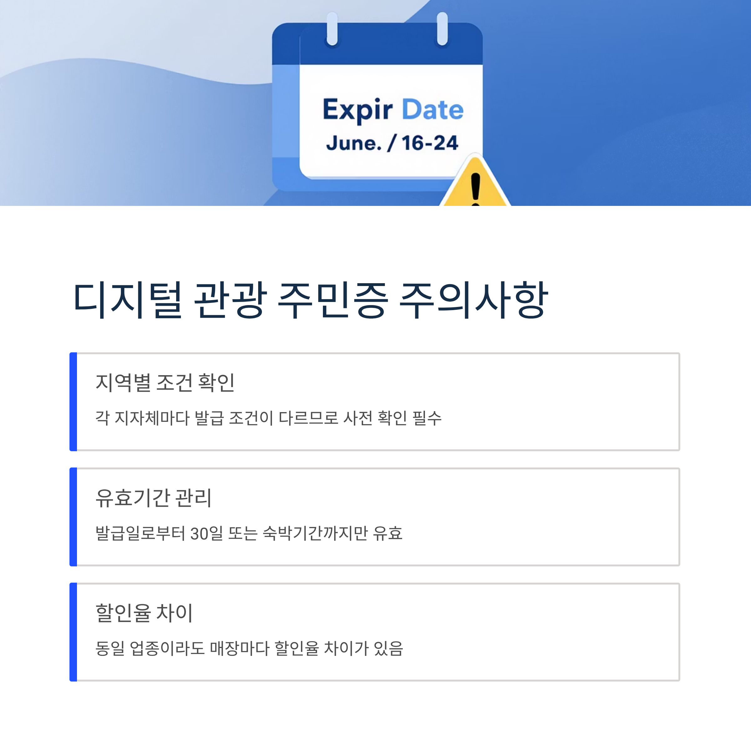 디지털 관광 주민증은 단순한 할인카드를 넘어 지역과 관광객을 연결하는 스마트한 관광 플랫폼입니다. 복잡한 절차 없이 간단한 신청만으로도 상당한 여행비용 절약이 가능하며, 지역 상권 활성화에도 기여할 수 있는 win-win 서비스입니다.