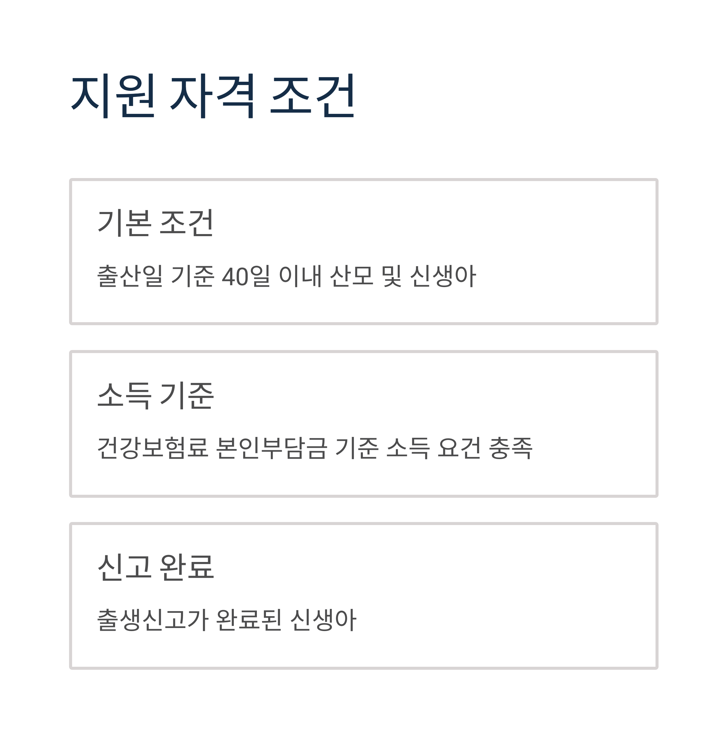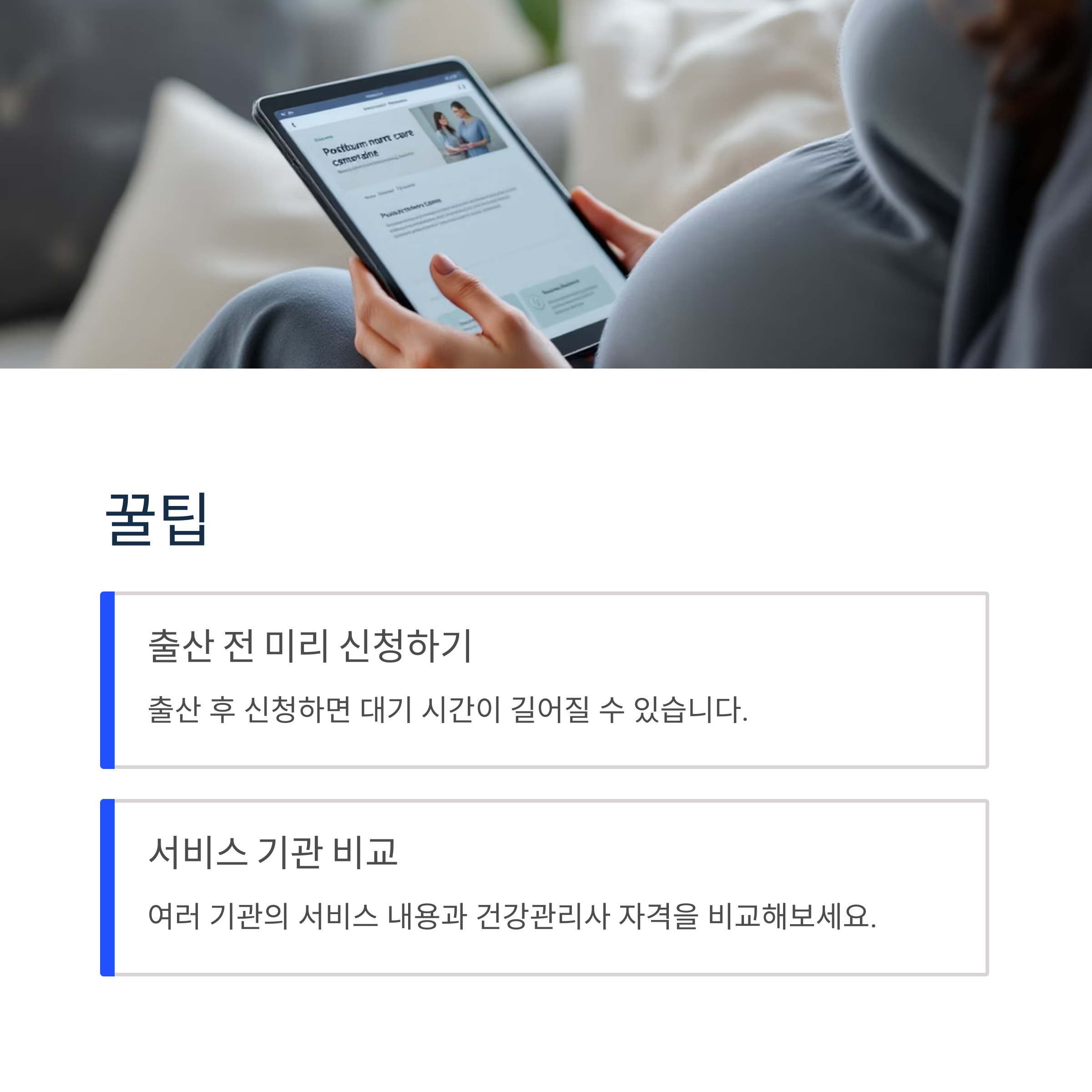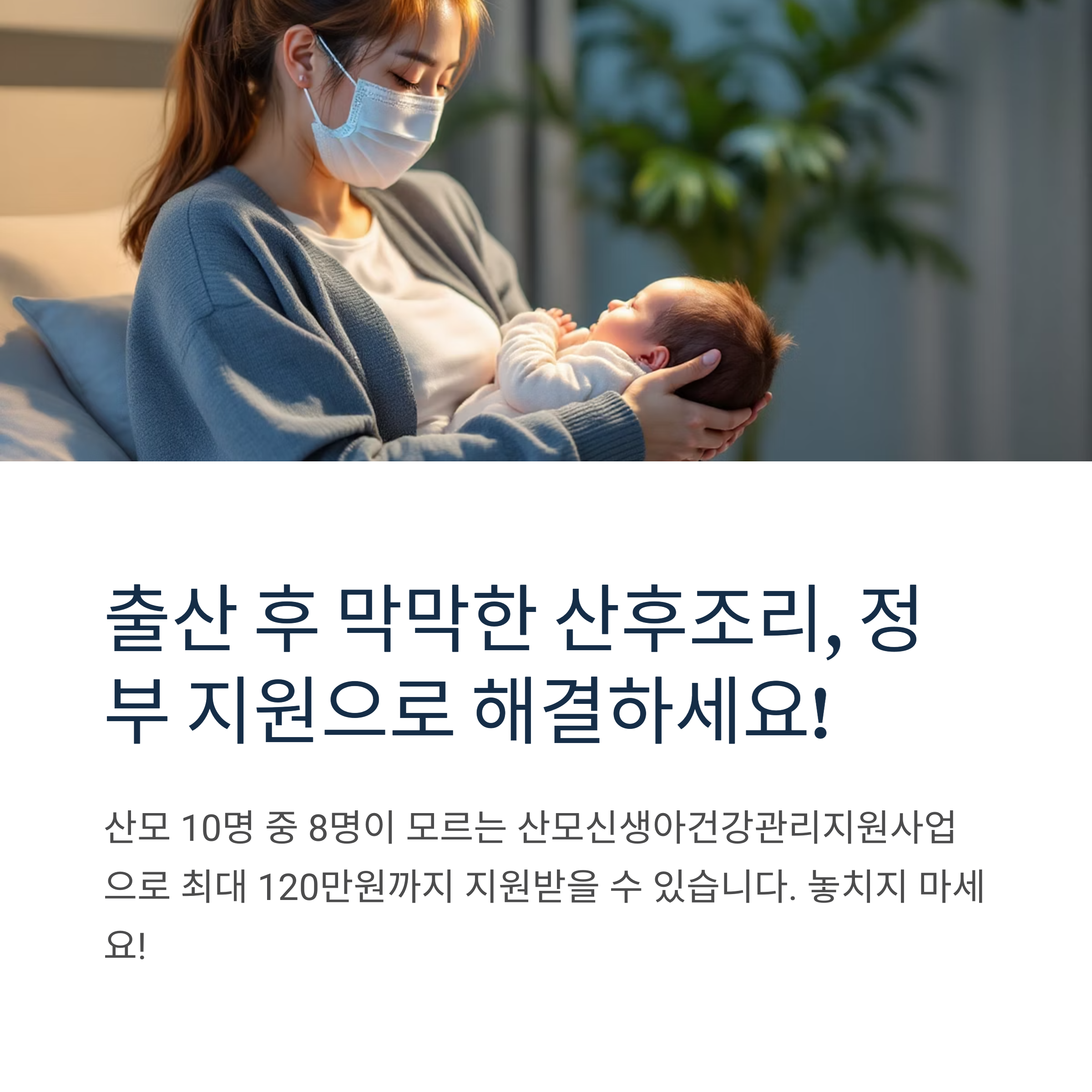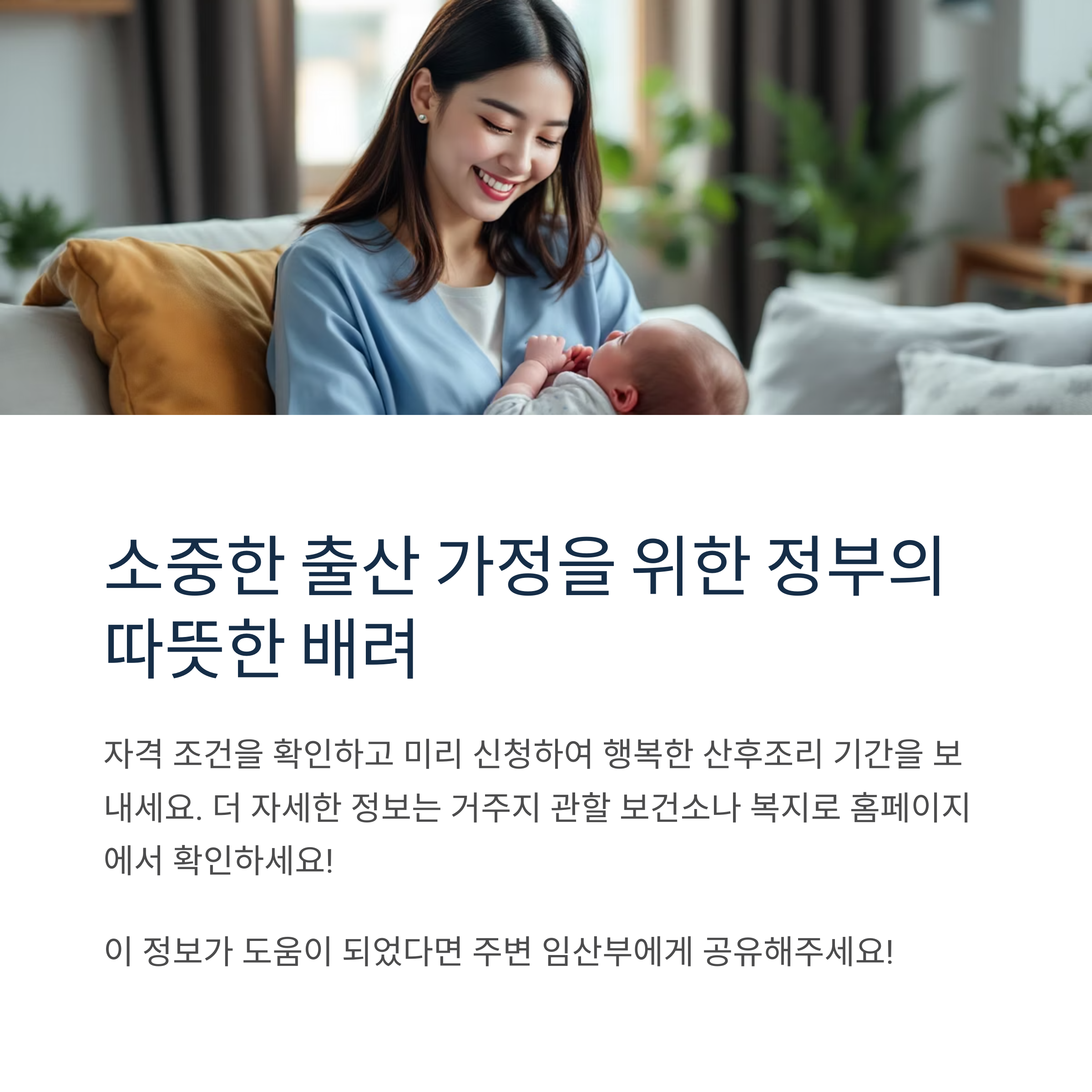 자격 조건을 확인하고 미리 신청하여 행복한 산후조리 기간을 보내시기 바랍니다.