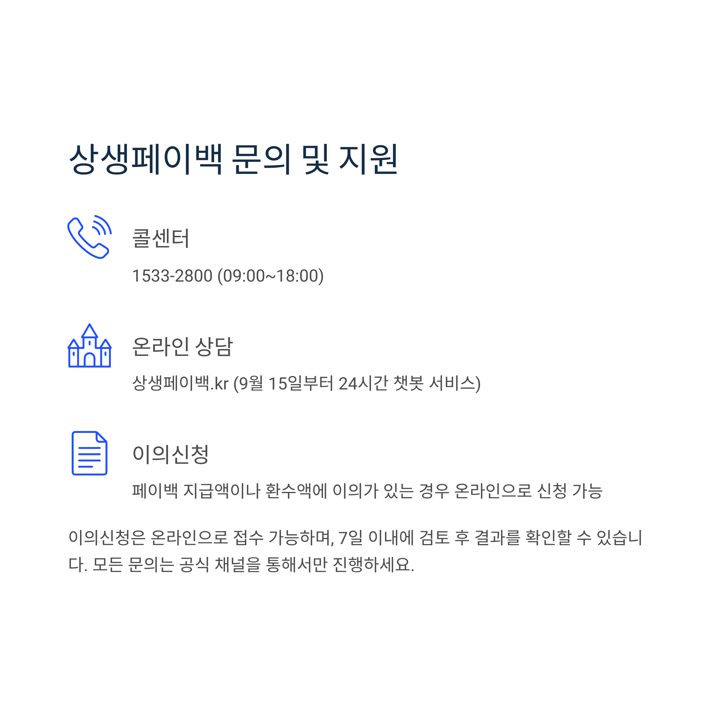 온라인 상담: 상생페이백.kr (9월 15일부터 24시간 챗봇 서비스)