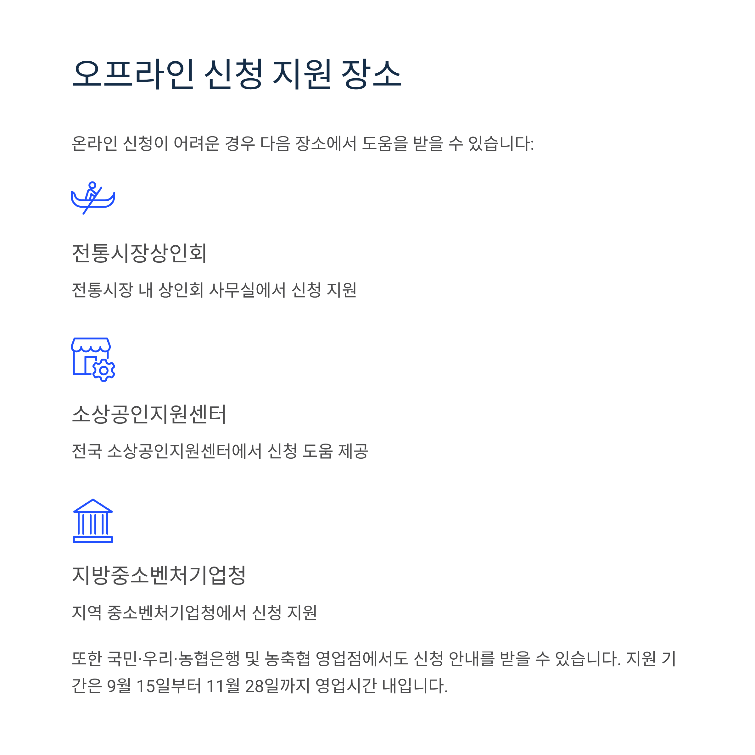 신청 지원처 (9월 15일 ~ 11월 28일, 영업시간 내):