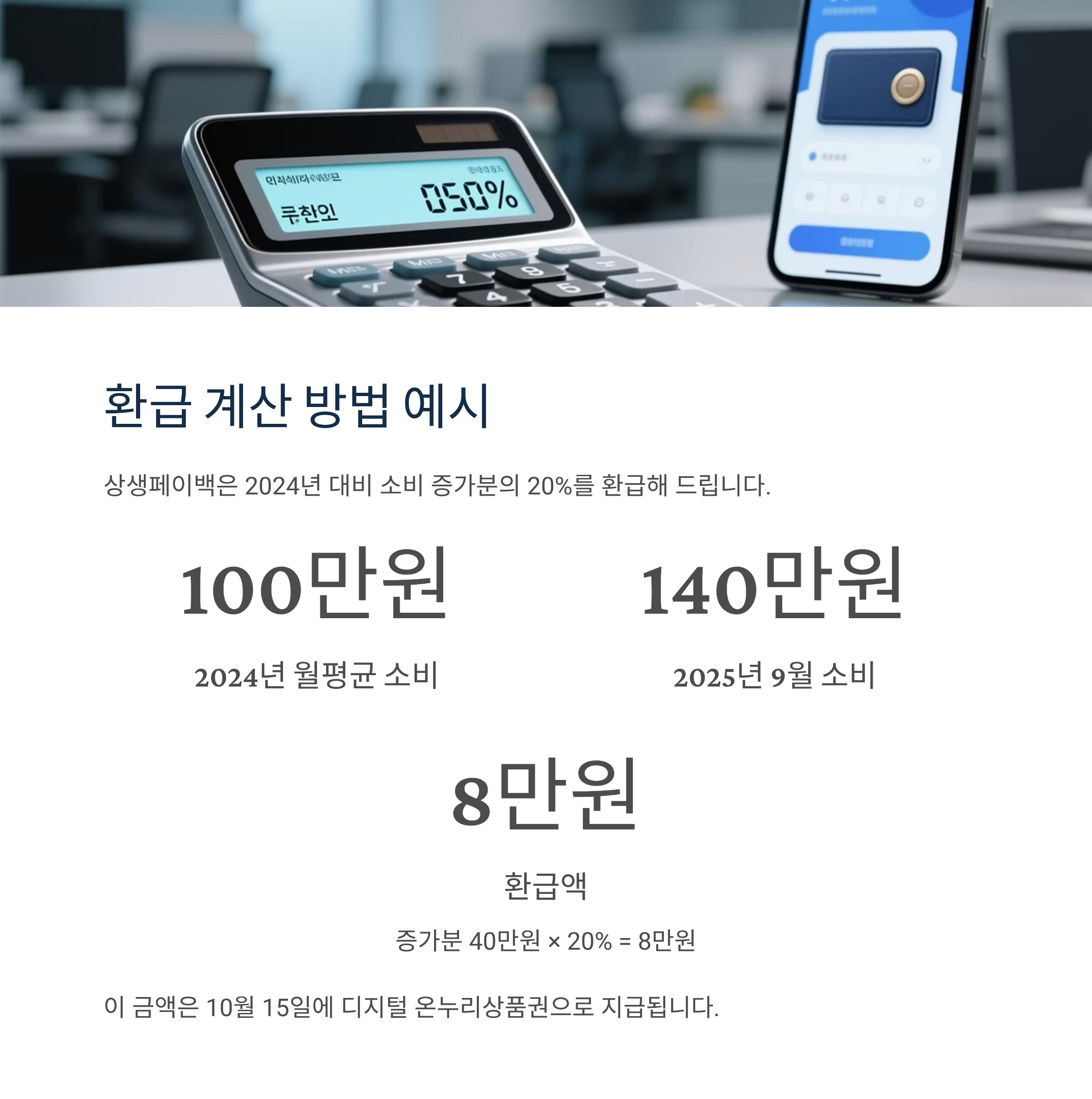 → 증가분 40만원 × 20% = 8만원 환급 (10월 15일 지급)