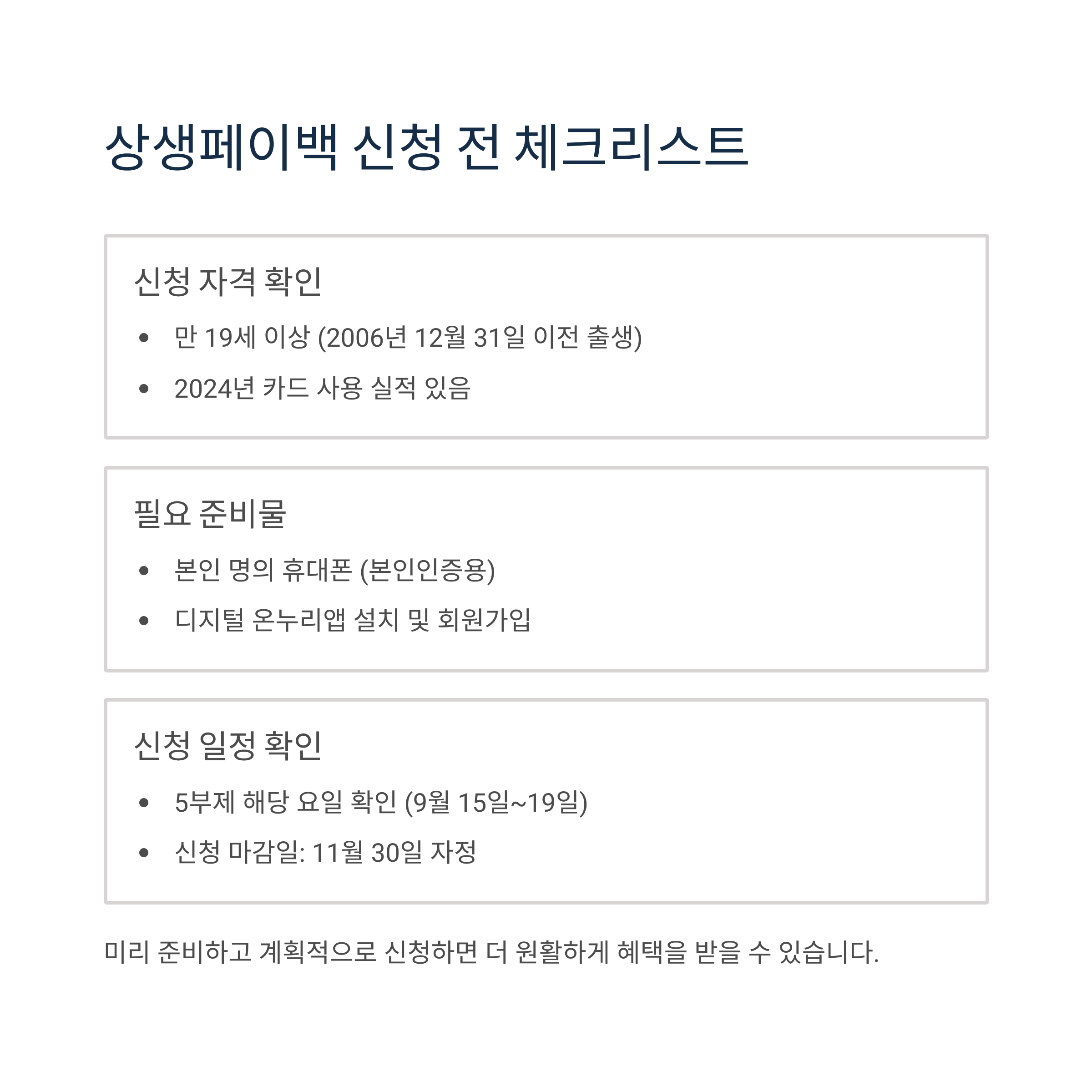 상생페이백 신청 시 주의사항