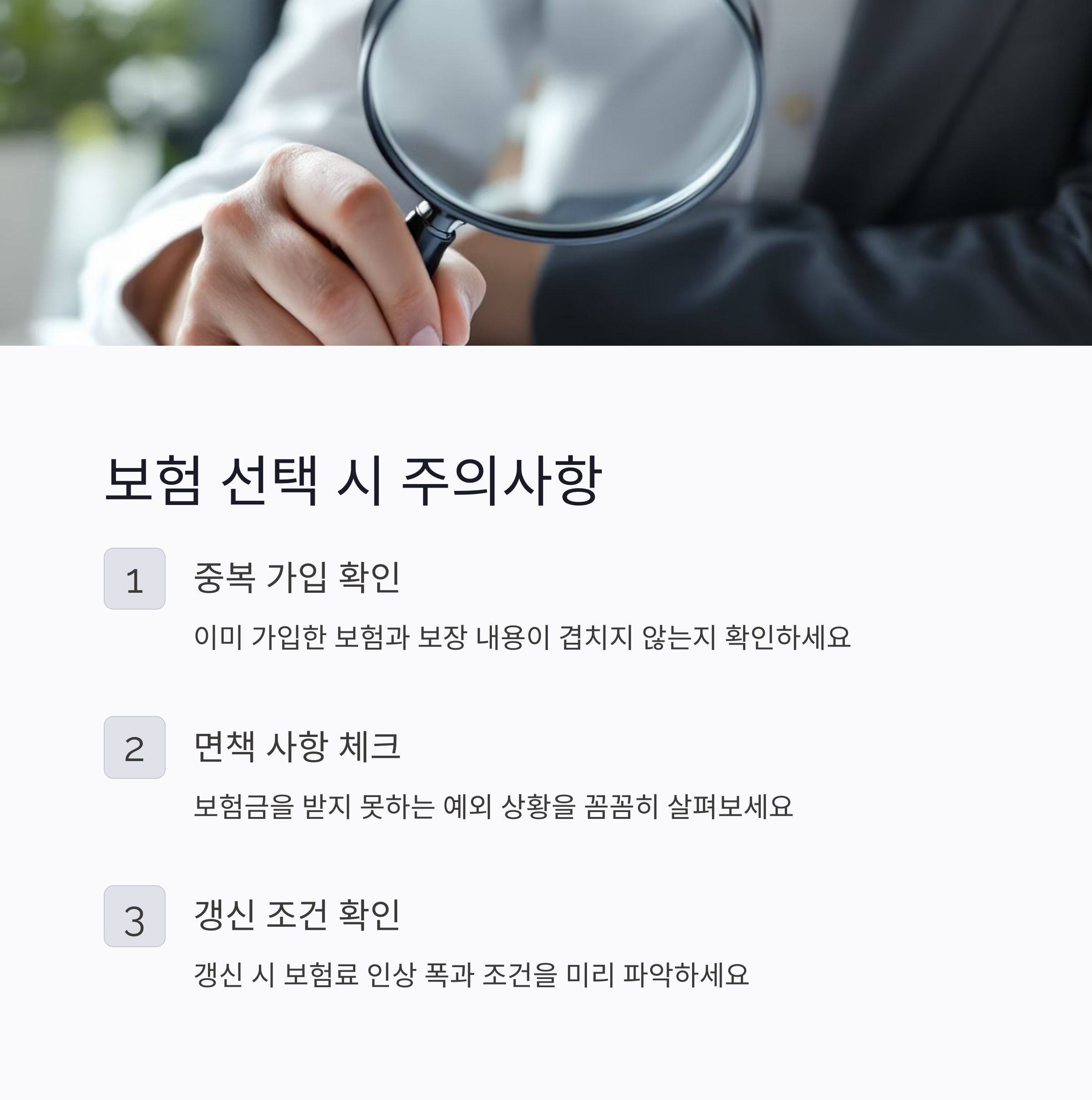 - 보장 범위: 면책사항과 보장 한계 꼼꼼히 확인