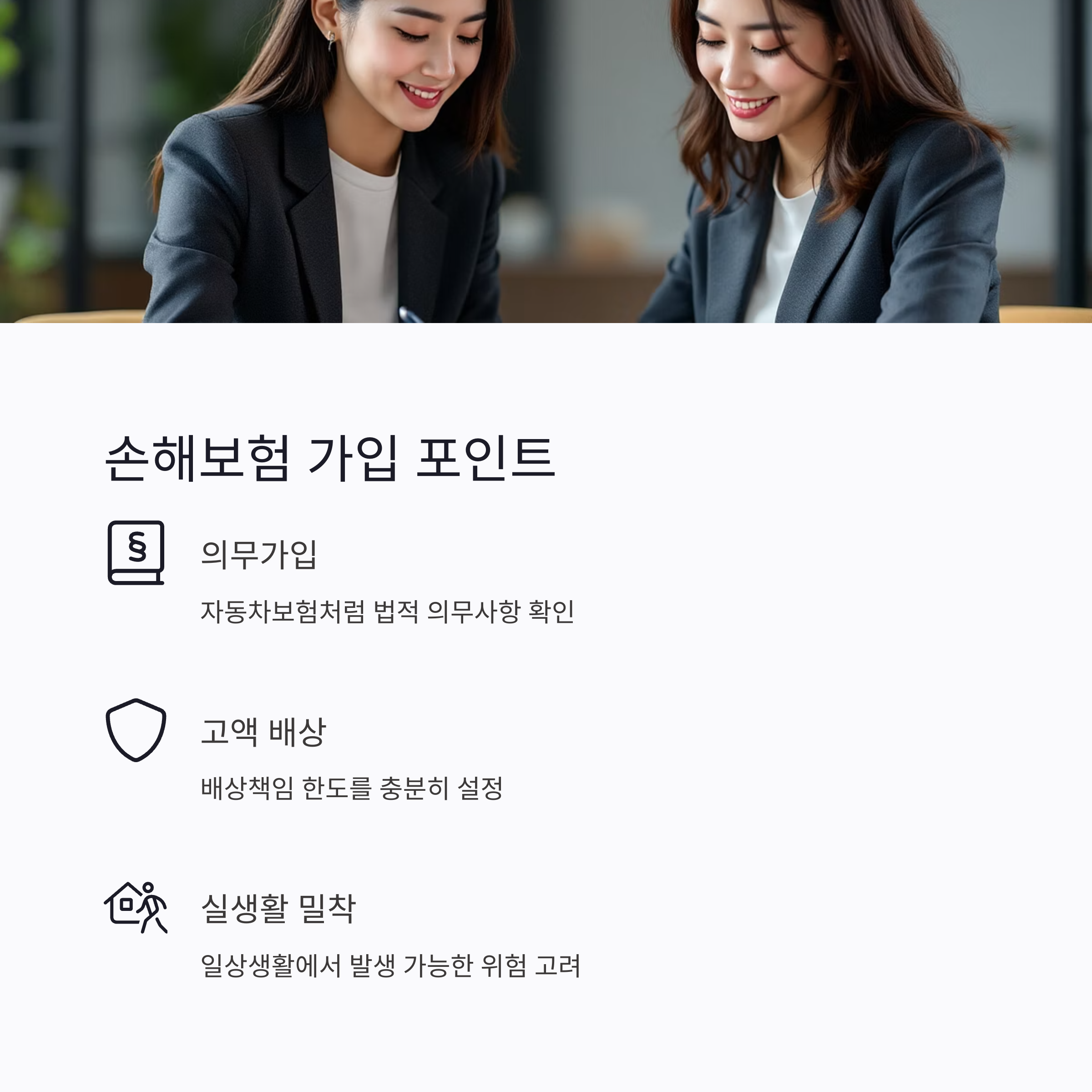 - 배상책임보험: 타인에게 끼친 손해 배상