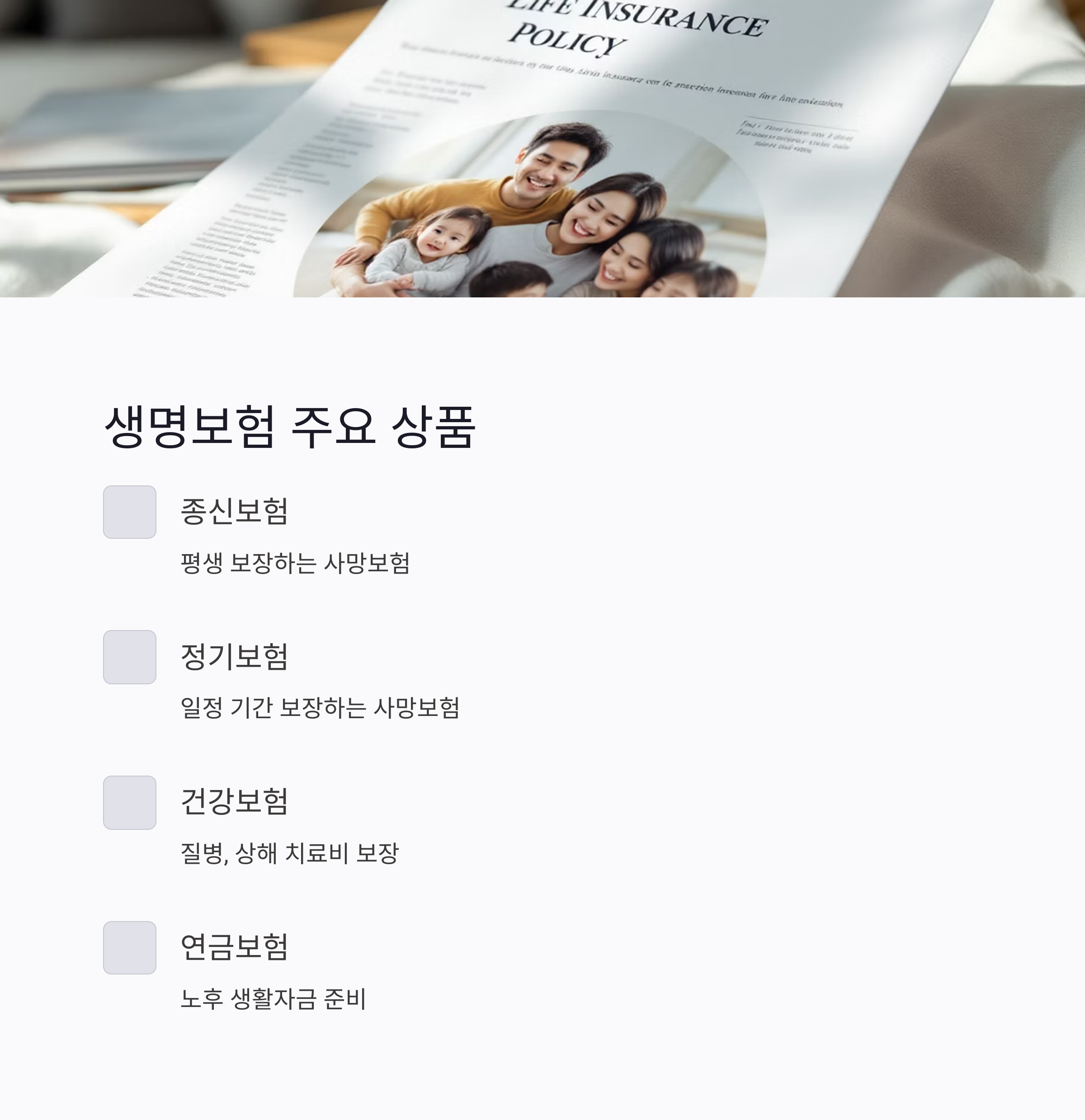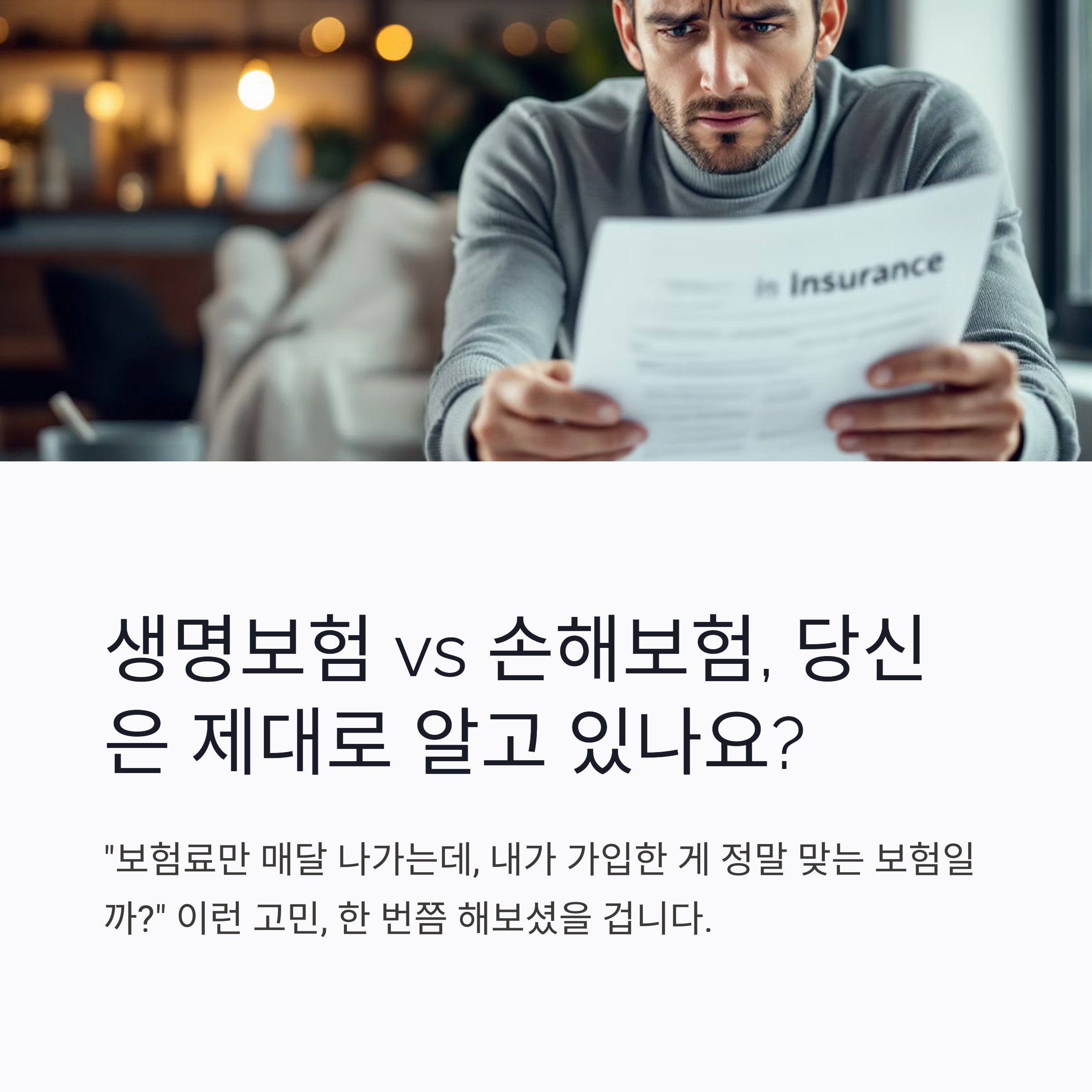 보험은 위험에 대한 경제적 준비입니다. 생명보험과 손해보험의 차이를 정확히 이해하고, 내 상황에 맞는 보험을 선택한다면 든든한 안전망을 구축할 수 있을 것입니다.