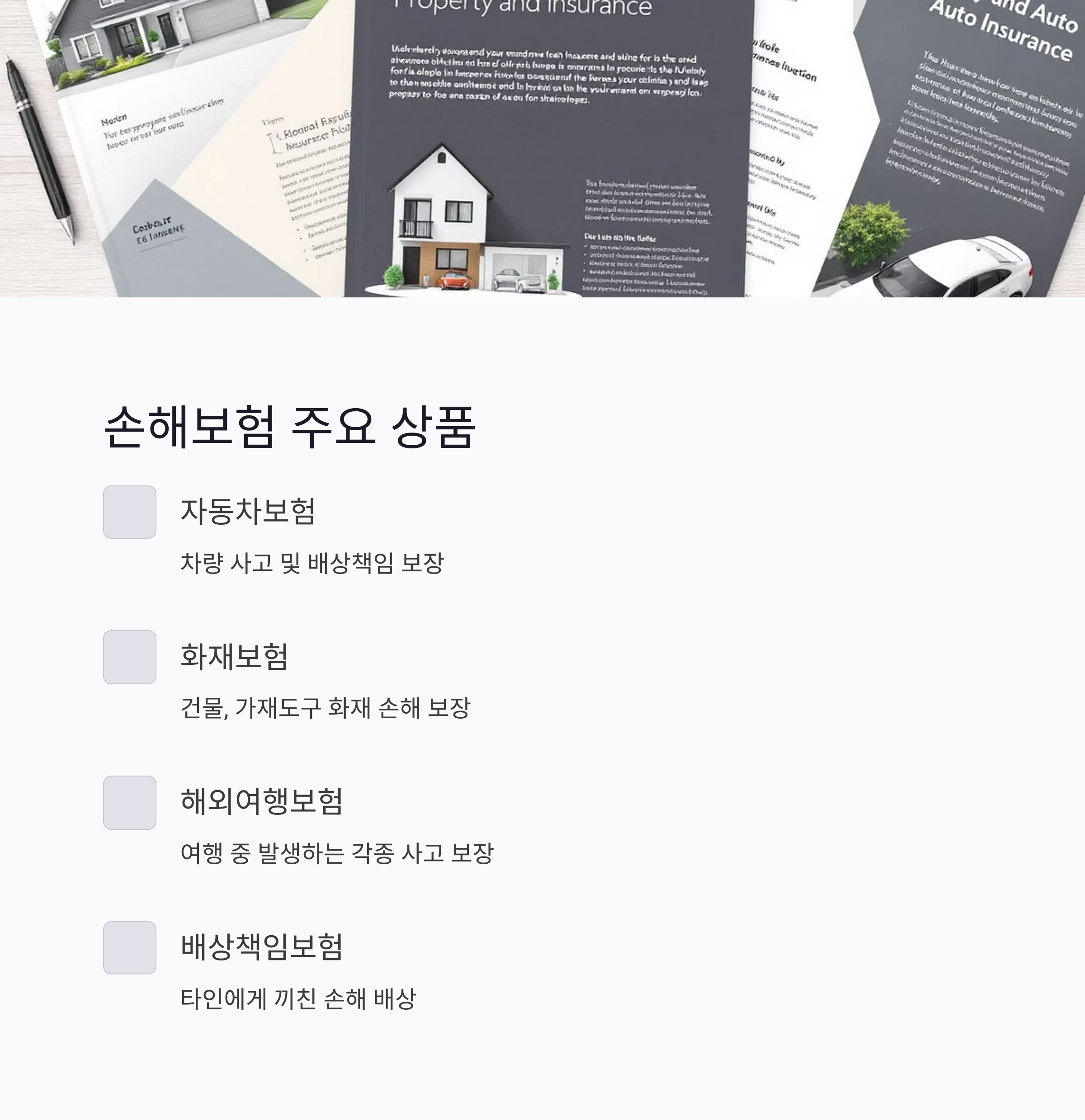- 자동차보험: 차량 사고 및 배상책임 보장