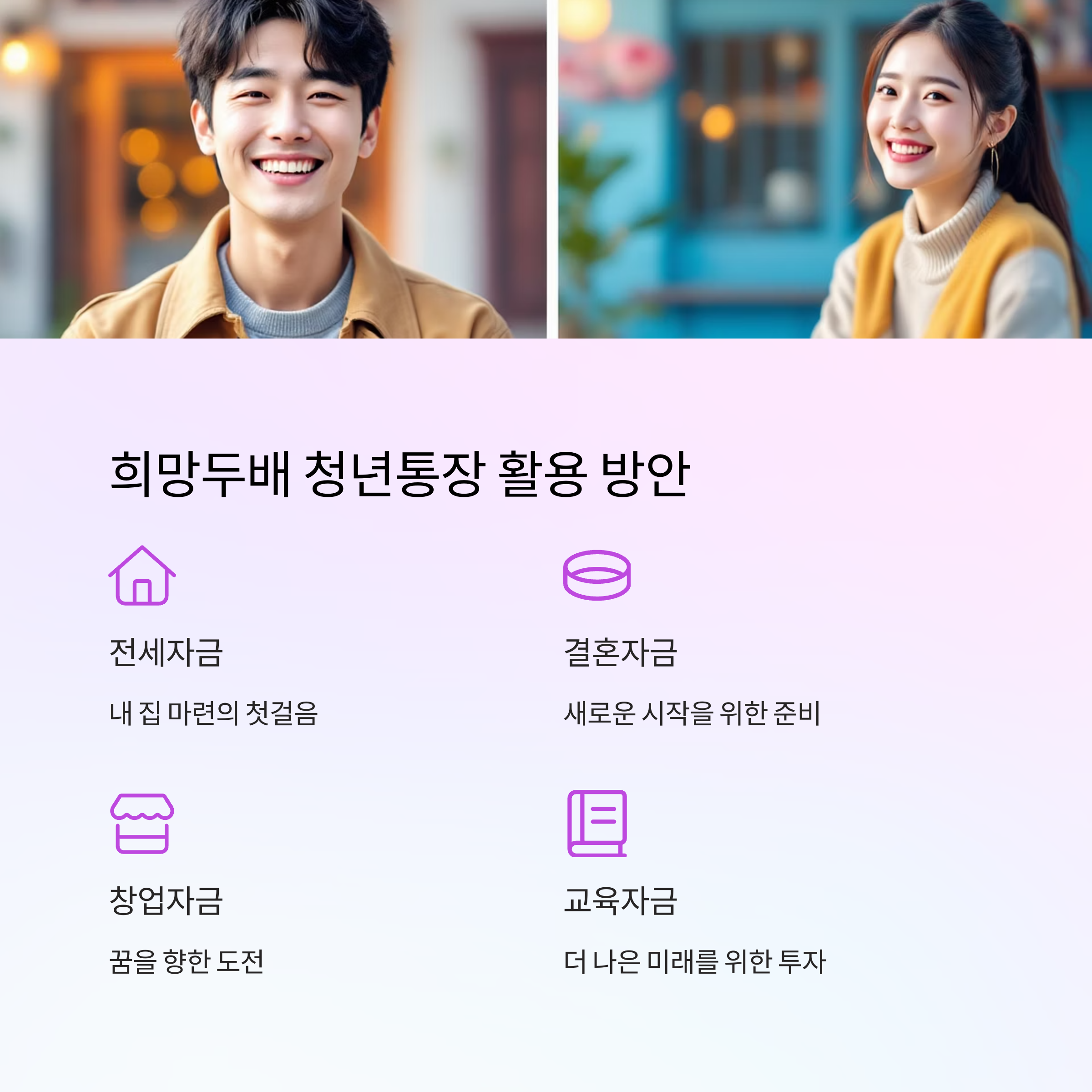 월 15만원이라는 부담도 크지 않은 금액으로 2~3년 후 목돈을 마련할 수 있다는 점에서 매우 매력적인 기회입니다. 특히 전세자금, 결혼자금, 창업자금 등 목돈이 필요한 청년들에게는 그야말로 '희망두배'가 될 수 있는 제도라고 할 수 있습니다.