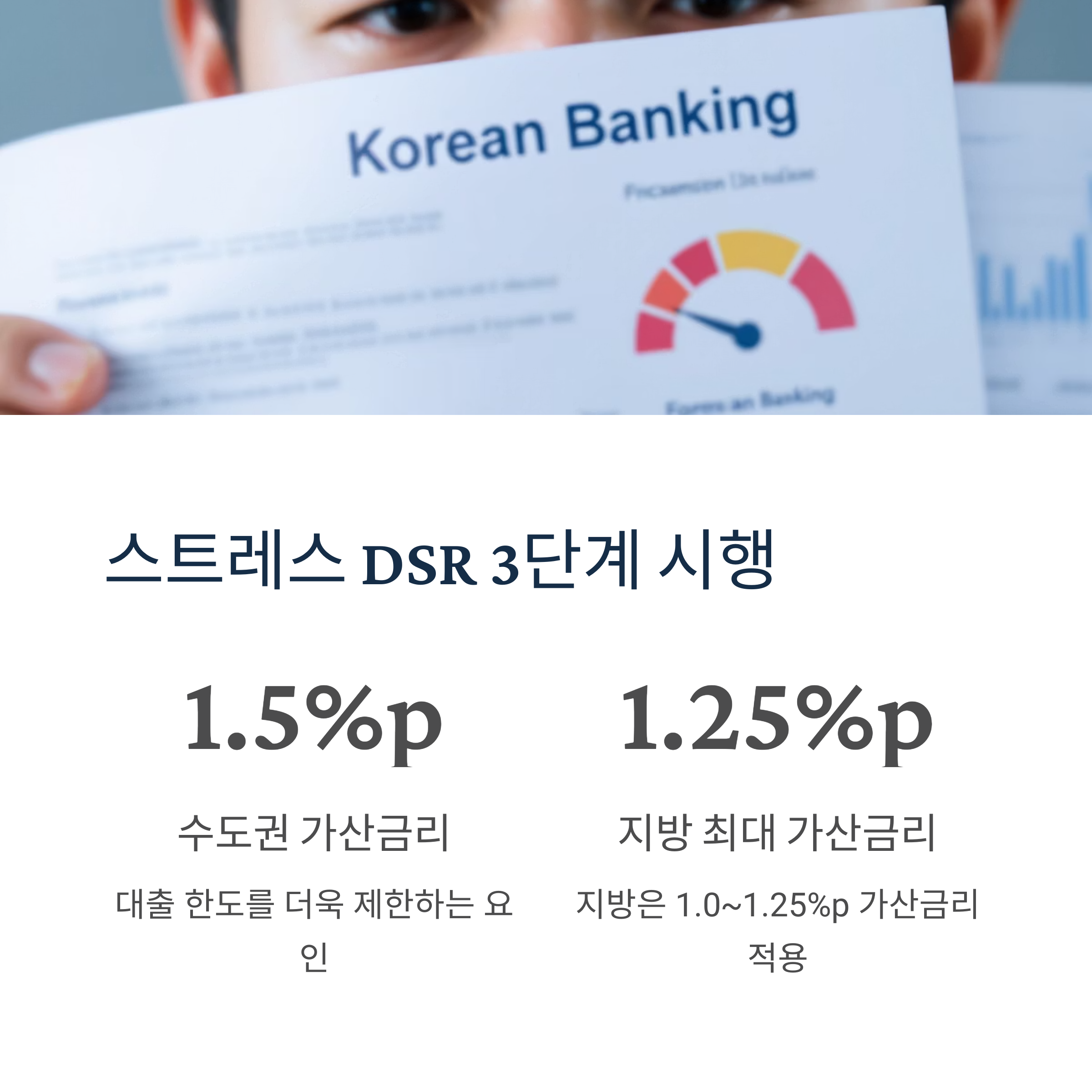 2025년 7월 예정된 스트레스 DSR 3단계 시행으로 수도권 최대 1.5%p, 지방 1.0~1.25%p의 가산금리가 강화될 예정입니다. 이는 대출 한도를 더욱 제한하는 요인으로 작용할 것입니다.