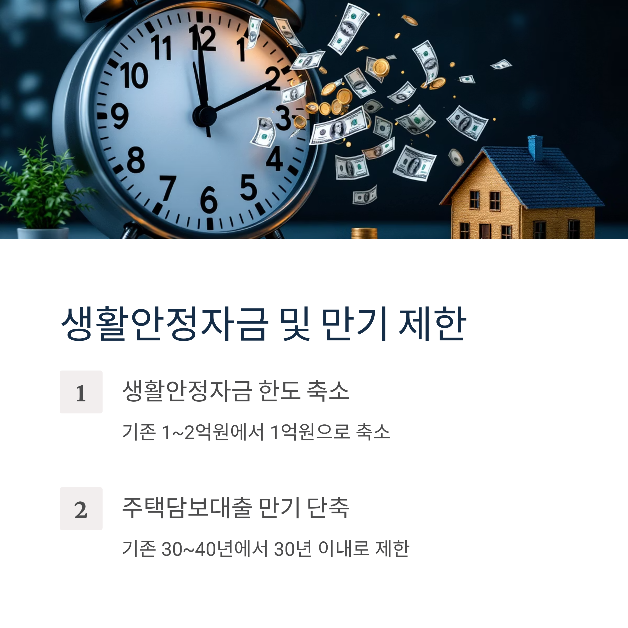 주택을 담보로 한 생활안정자금 대출 한도가 기존 1~2억원에서 1억원으로 축소됩니다.