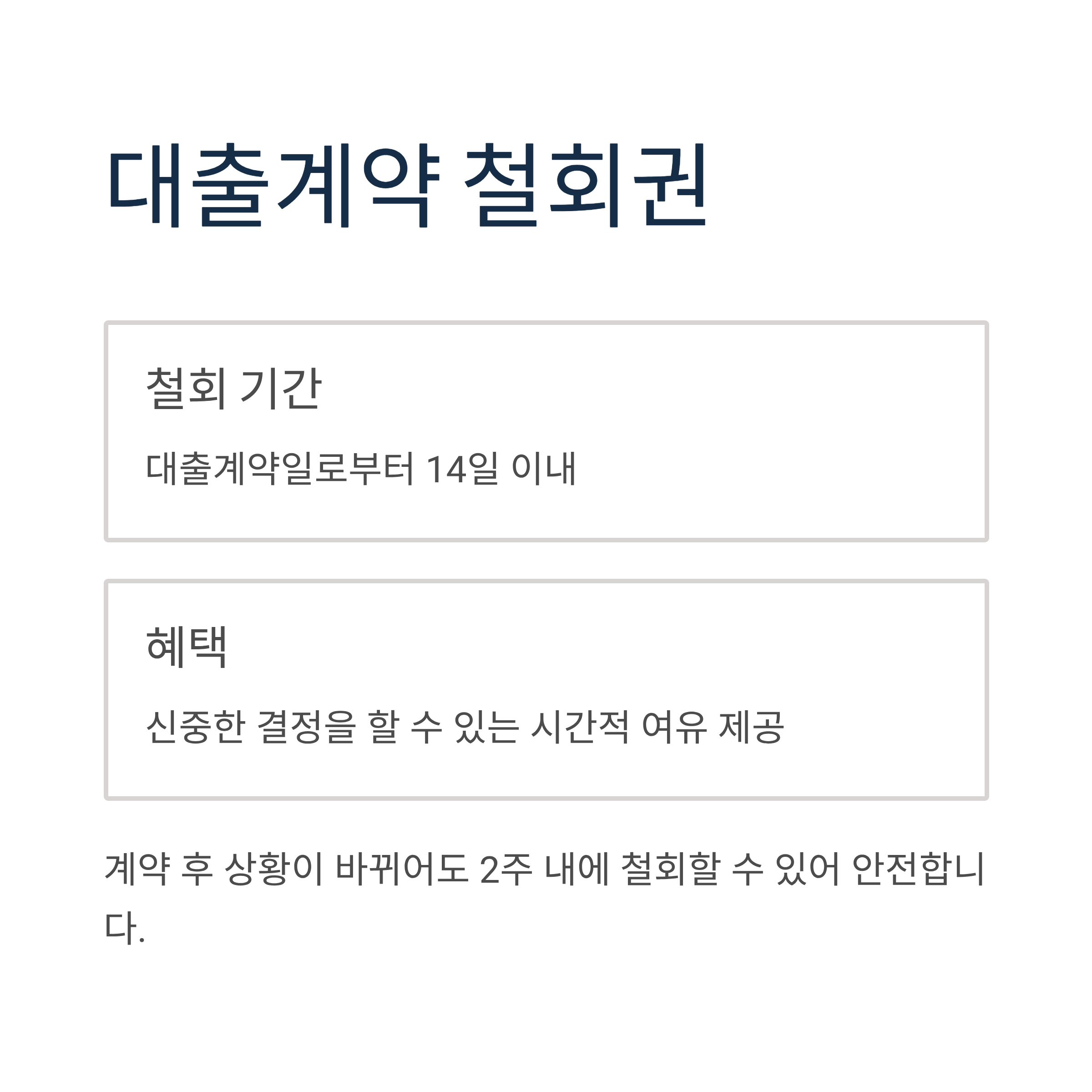 대출계약일로부터 14일 이내에 대출계약 철회가 가능하여 신중한 결정을 할 수 있는 시간적 여유를 제공합니다.