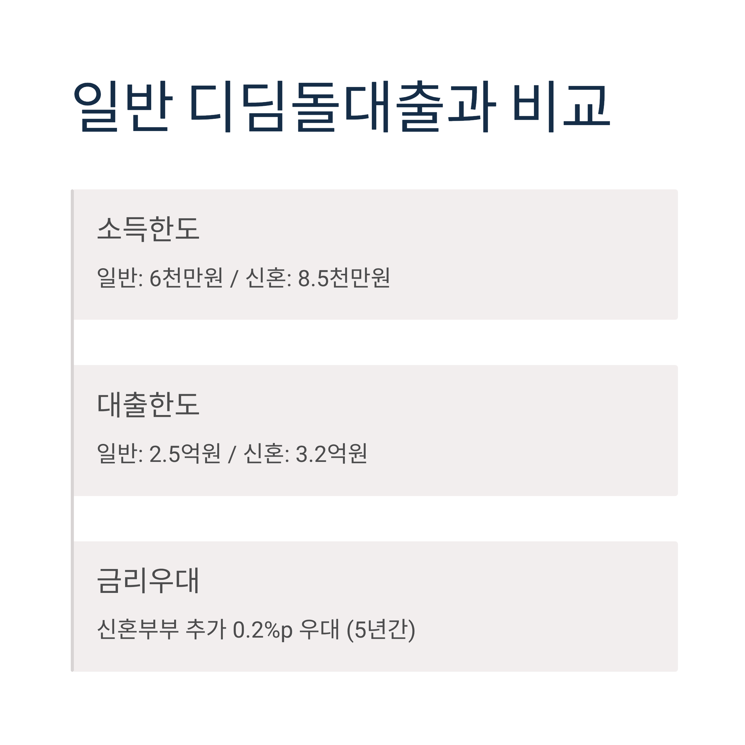 💡 팁: 신혼부부 디딤돌대출의 0.2%p 금리우대만으로도 3억원 대출 기준 5년간 약 300만원의 이자를 절약할 수 있습니다. 지금 바로 신청 자격을 확인해보세요!