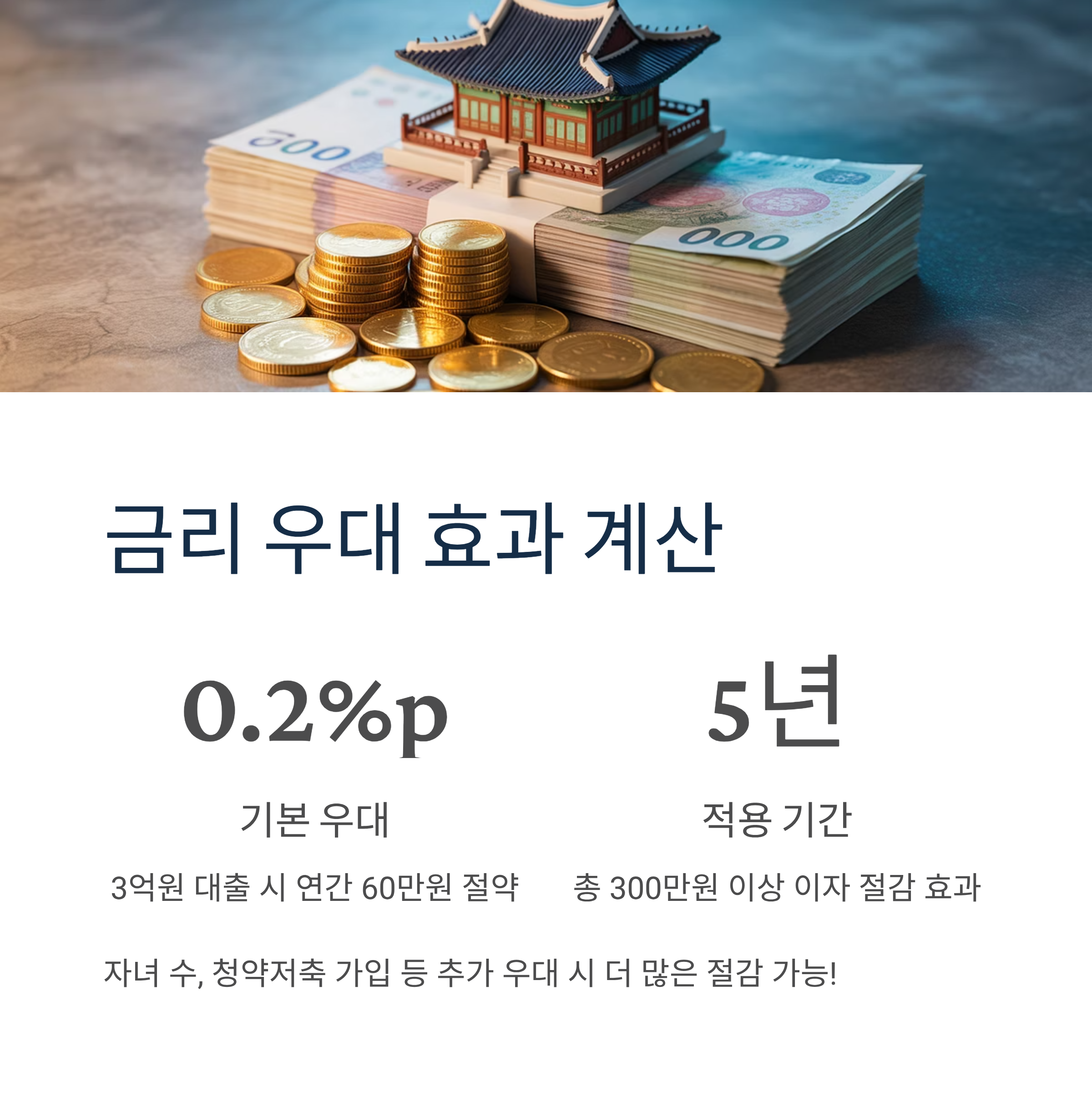 - 청약저축 가입자: 연 0.3~0.5%p (가입기간에 따라)