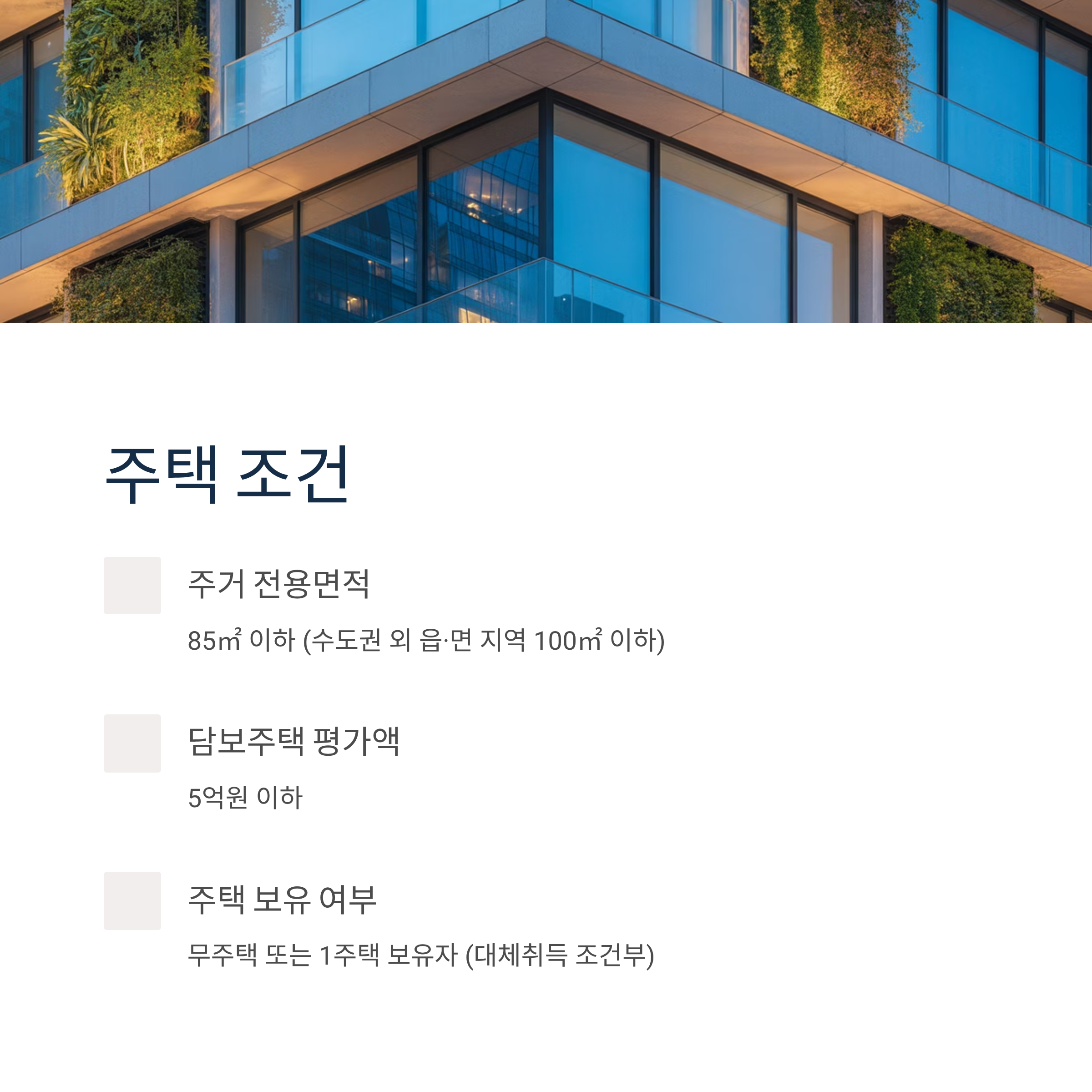 - 주택 조건: 85㎡ 이하, 5억원 이하 주택인지 확인