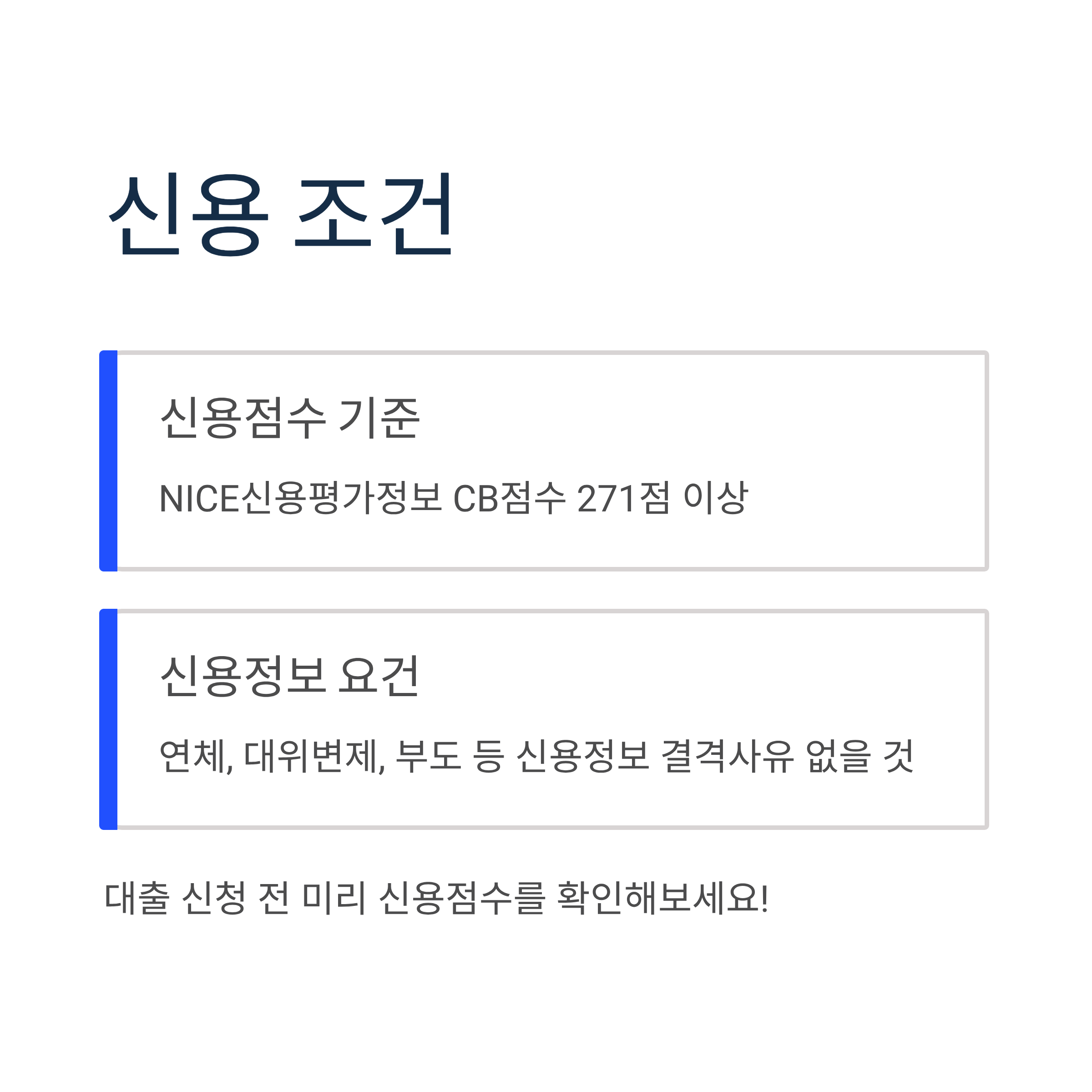 - 신용점수: CB점수 271점 이상 여부 사전 점검