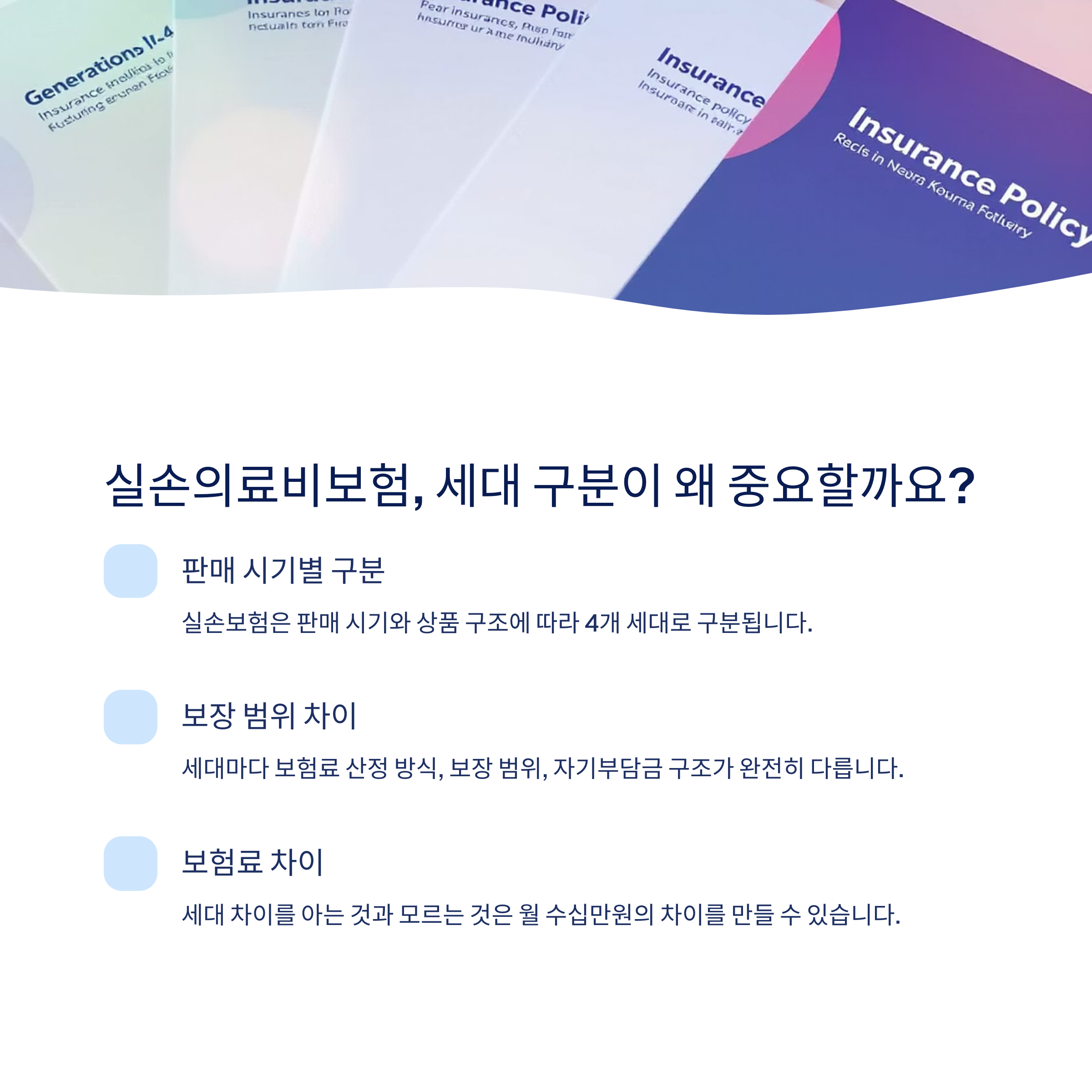 각 세대마다 갱신 주기와 보험료 인상 패턴이 다릅니다. 실손보험 갱신을 앞두고 계시다면, 현재 가입한 세대의 특성을 고려해 신중하게 결정하시기 바랍니다.