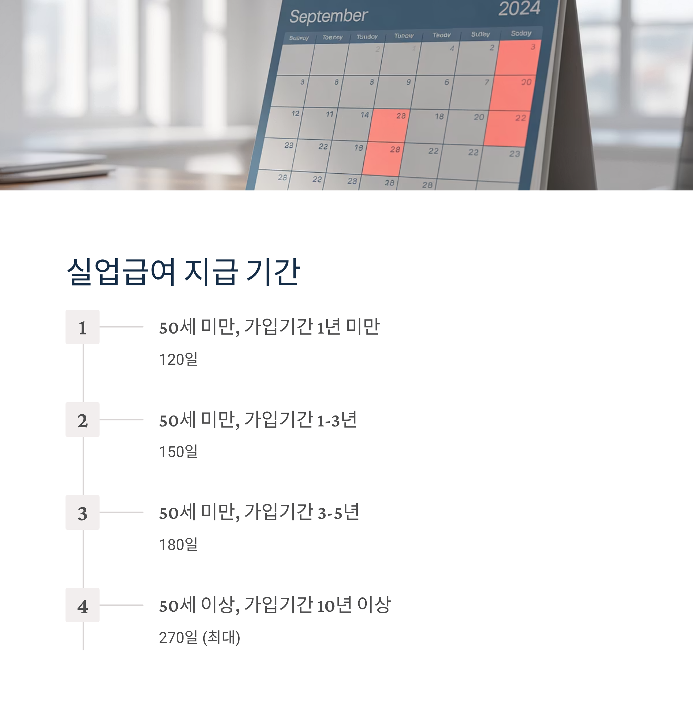 - 50세 미만, 가입기간 1년 미만: 120일