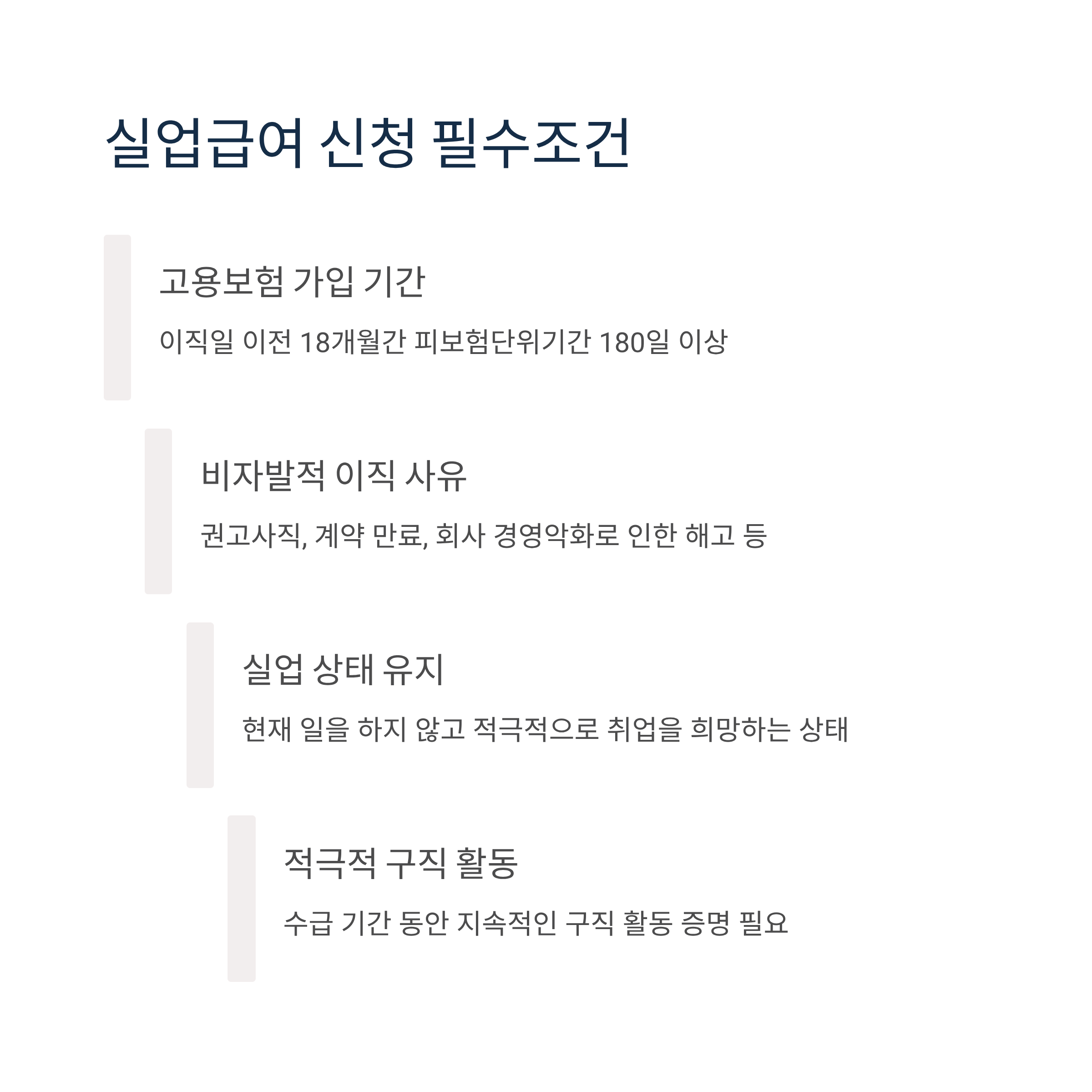 실업급여를 받기 위해서는 다음 4가지 조건을 모두 충족해야 합니다: