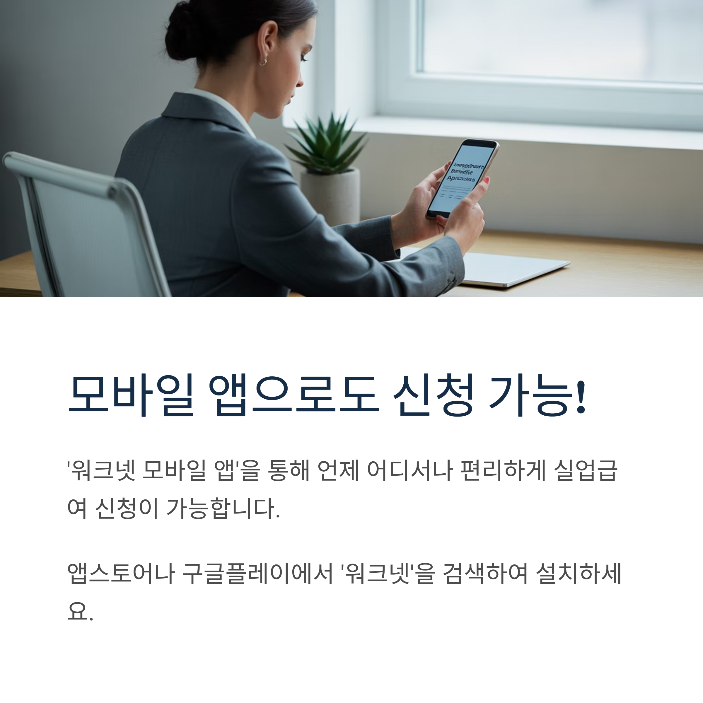 '워크넷 모바일 앱'을 통해서도 신청이 가능합니다. 언제 어디서나 편리하게 이용할 수 있어 많은 분들이 활용하고 있습니다.