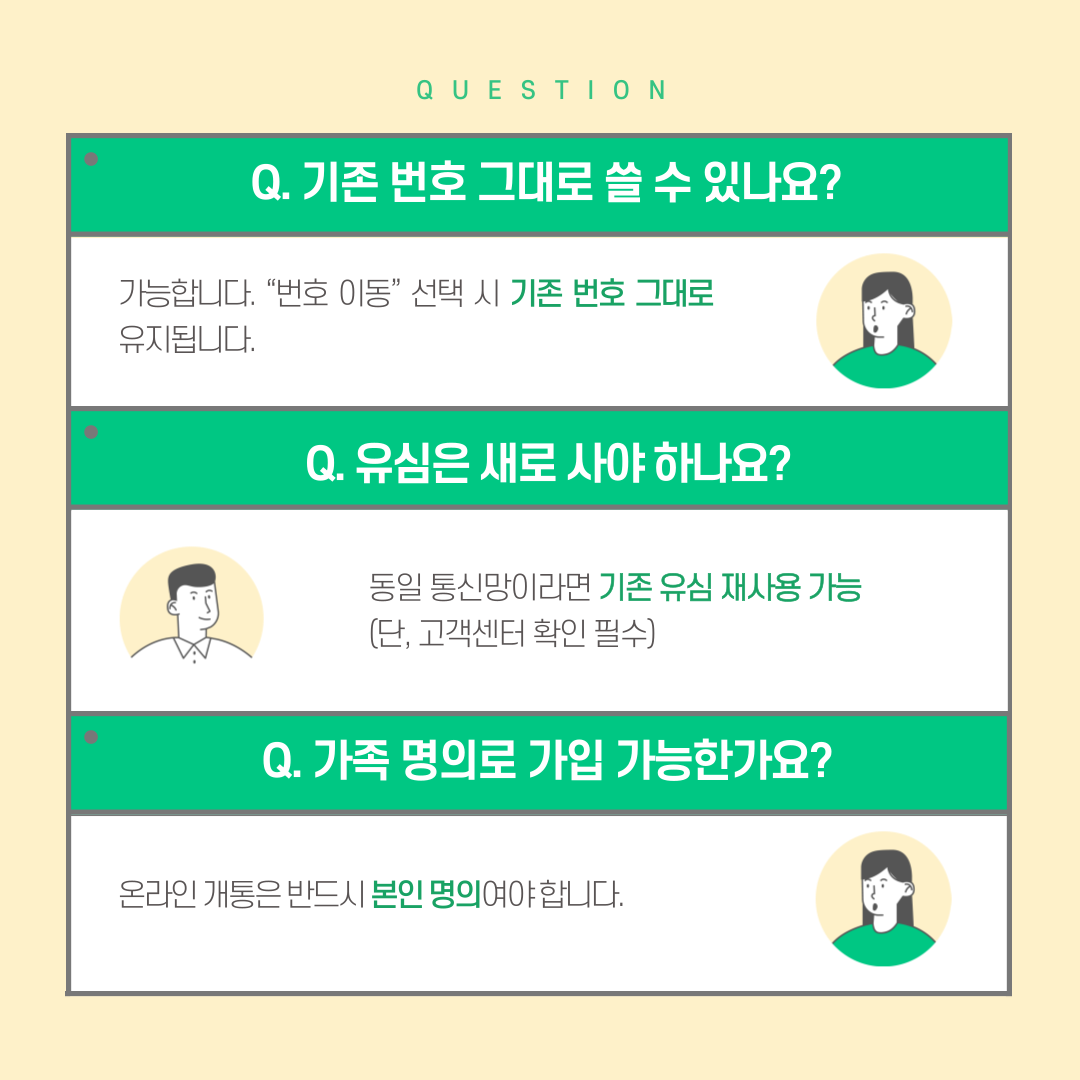 Q. 기존 번호 그대로 쓸 수 있나요?