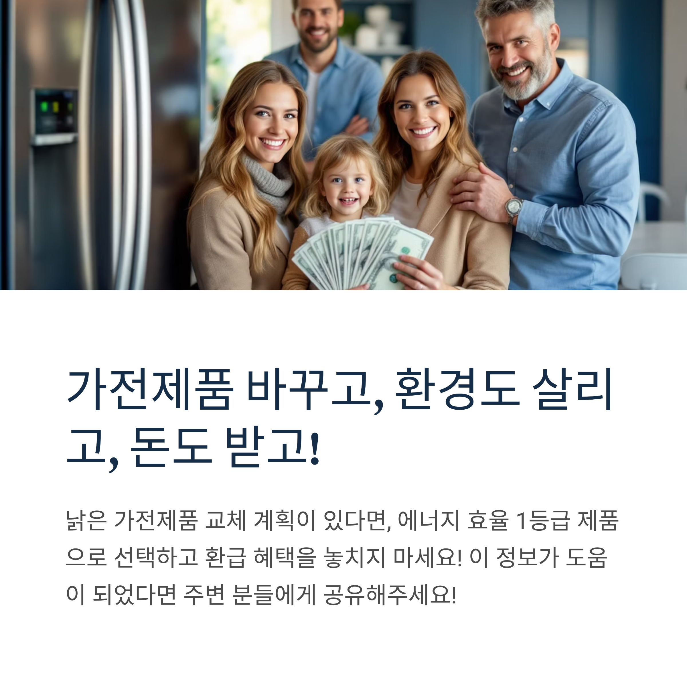 낡은 가전제품을 교체할 계획이 있다면, 반드시 에너지 효율 1등급 제품을 선택하고 이 환급 혜택을 놓치지 마세요!
