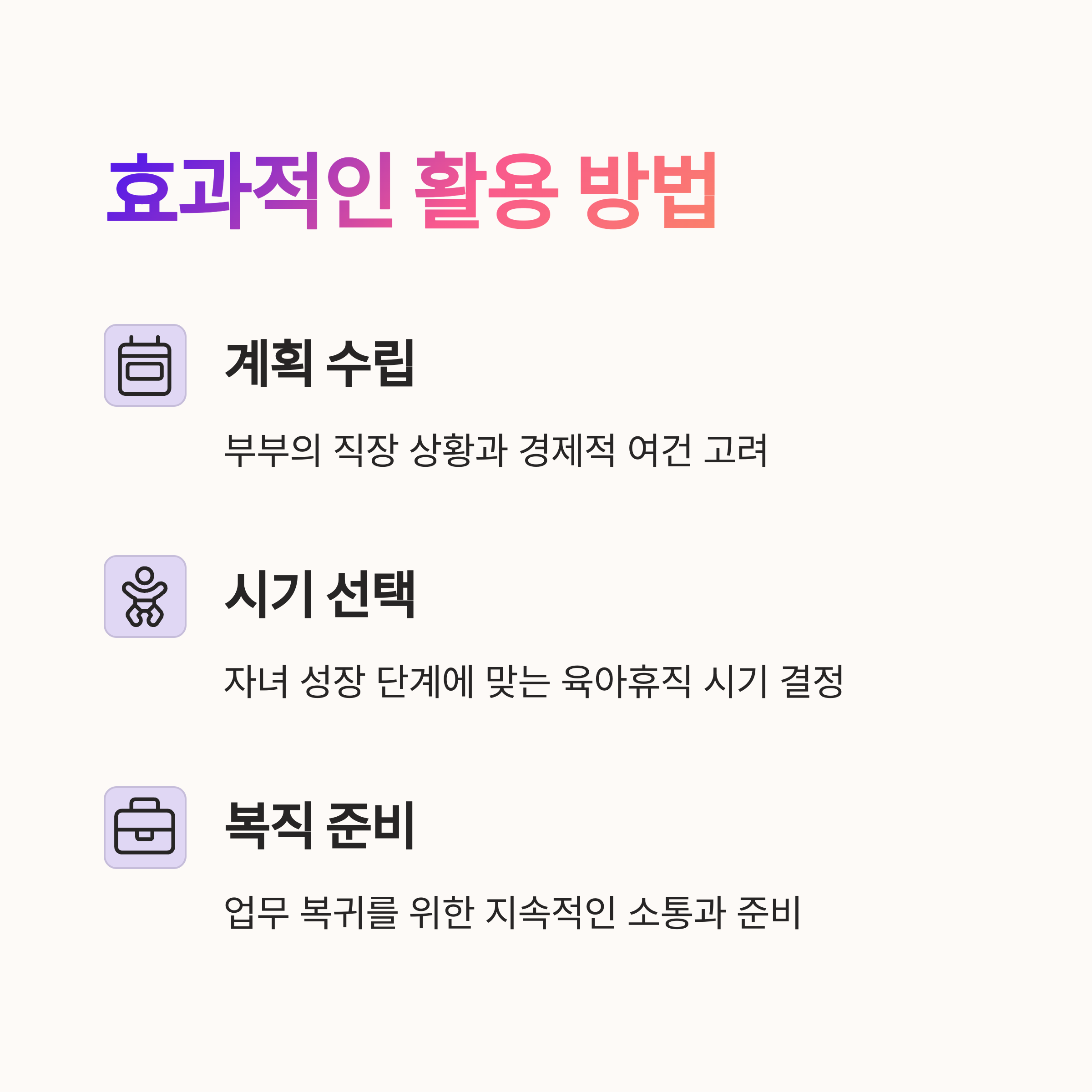 • 회사 내규와 육아휴직 관련 정책 사전 확인