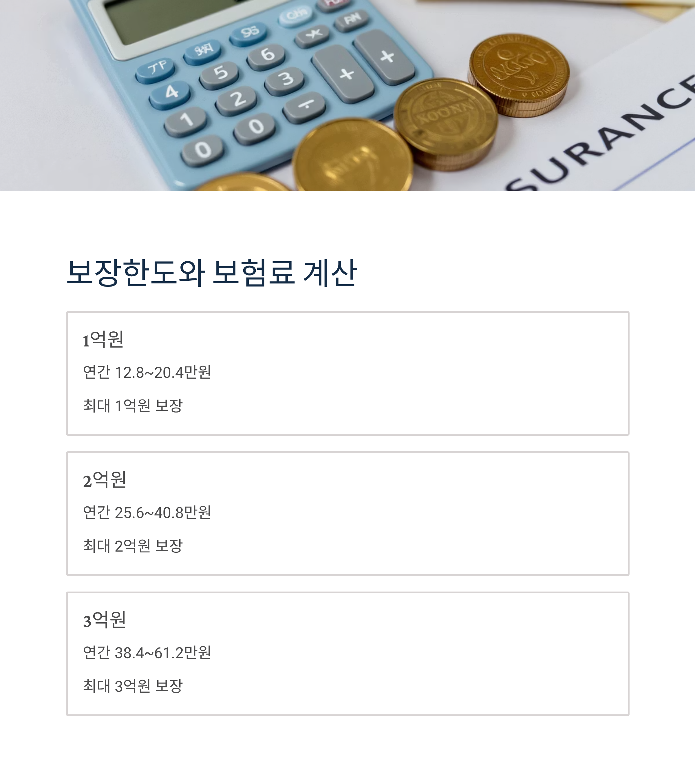 | 보증금액 | 연간 보험료 | 보장한도 |