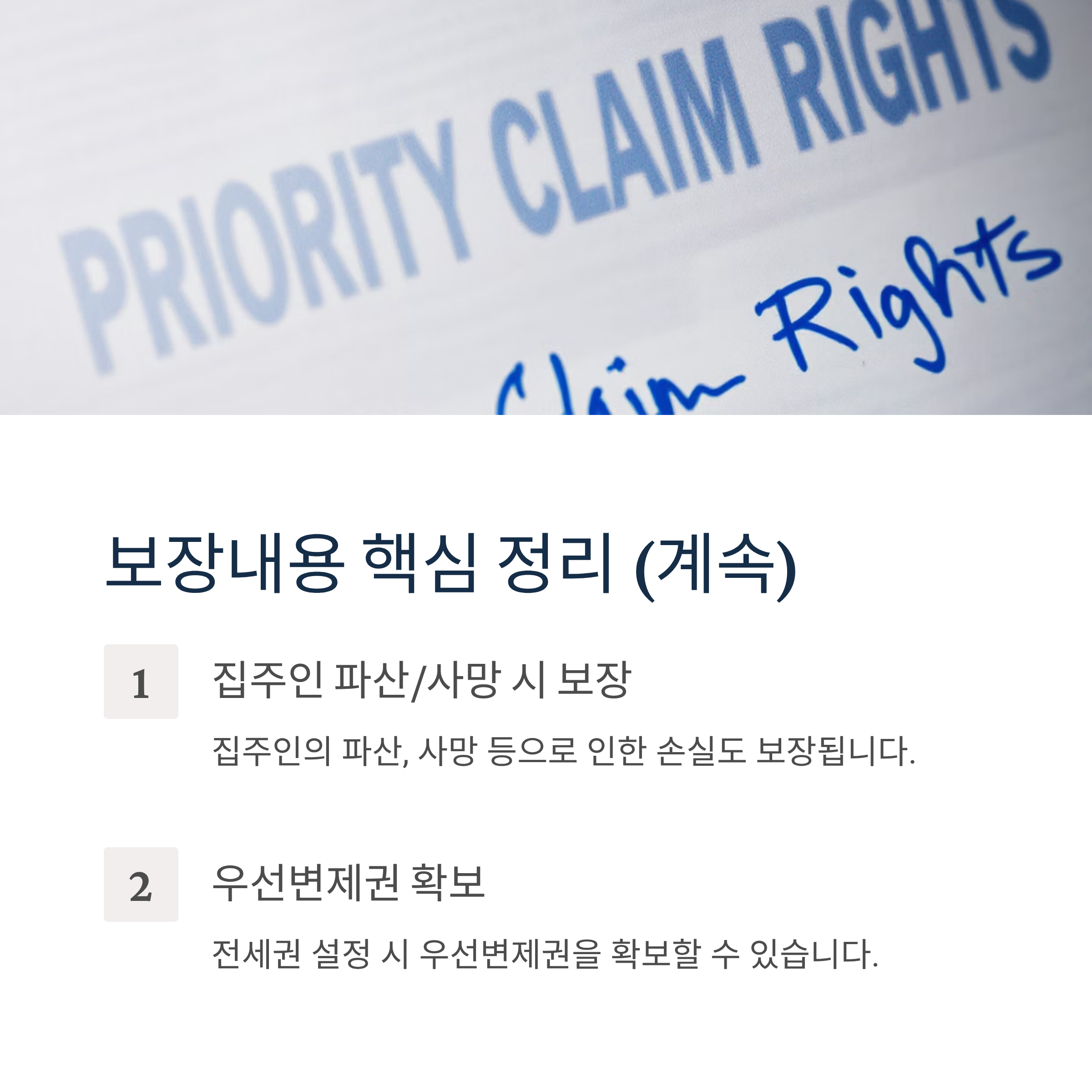 - 집주인의 파산, 사망 등으로 인한 손실 보장