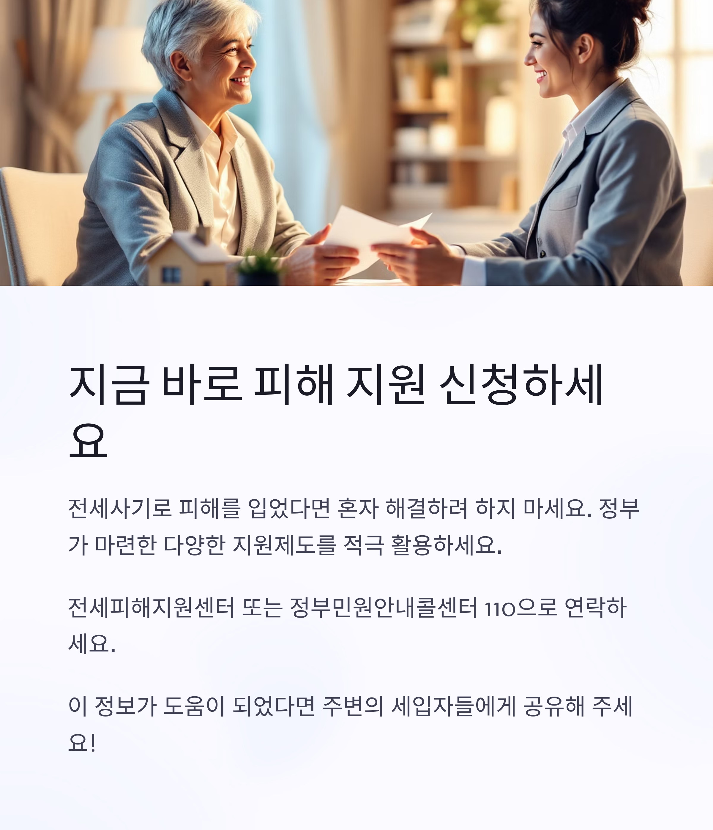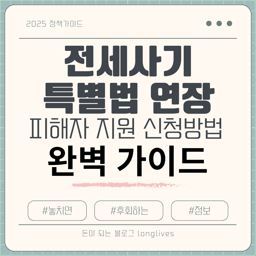 전세사기로 인한 피해를 입었다면 혼자 해결하려 하지 말고, 정부가 마련한 다양한 지원제도를 적극적으로 활용하시기 바랍니다. 특별법 연장으로 2027년까지 지원을 받을 수 있으니, 늦었다고 생각하지 말고 지금이라도 신청해보세요.