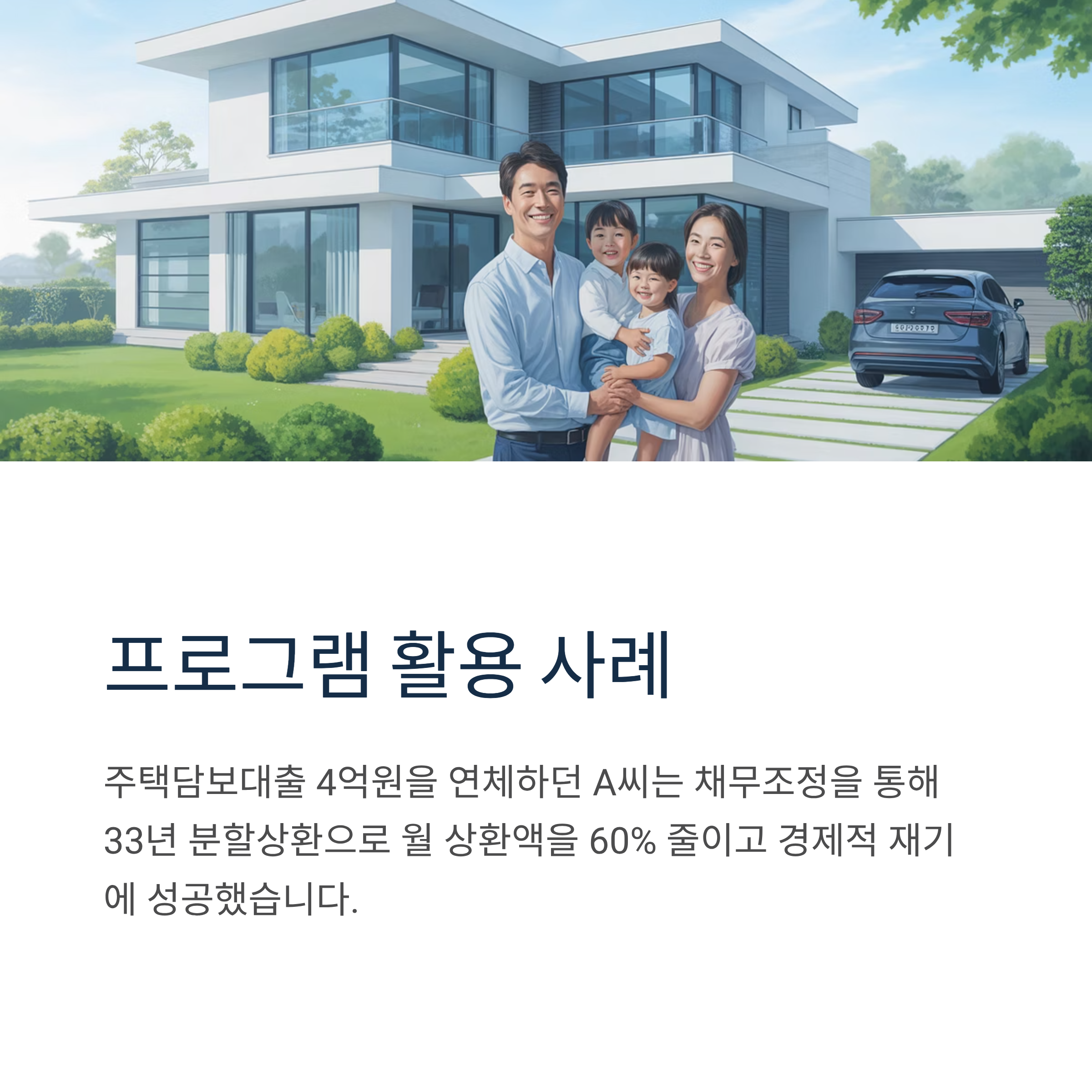 - 심사 진행: 제출된 서류를 바탕으로 지원 대상 여부와 채무조정 조건을 심사합니다.