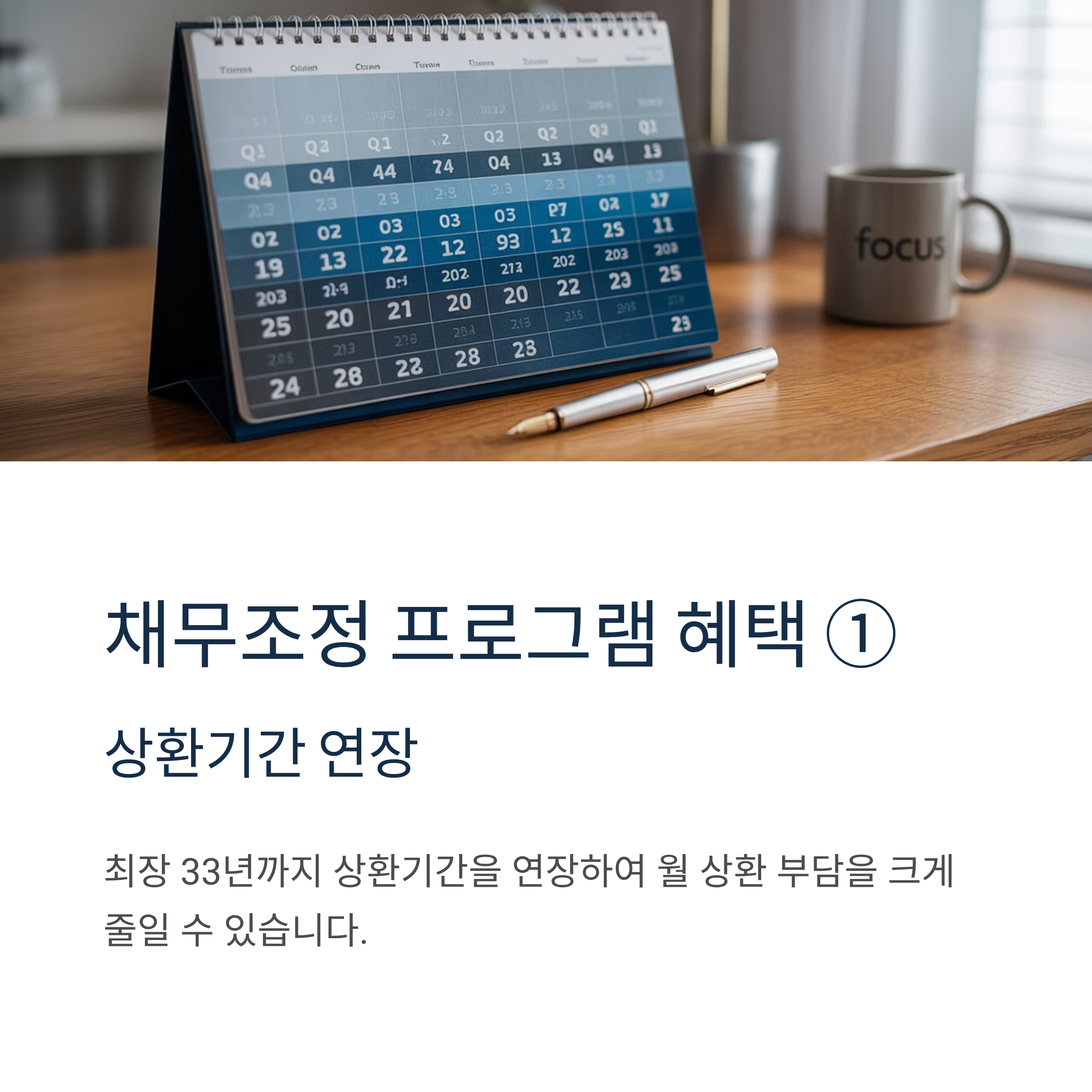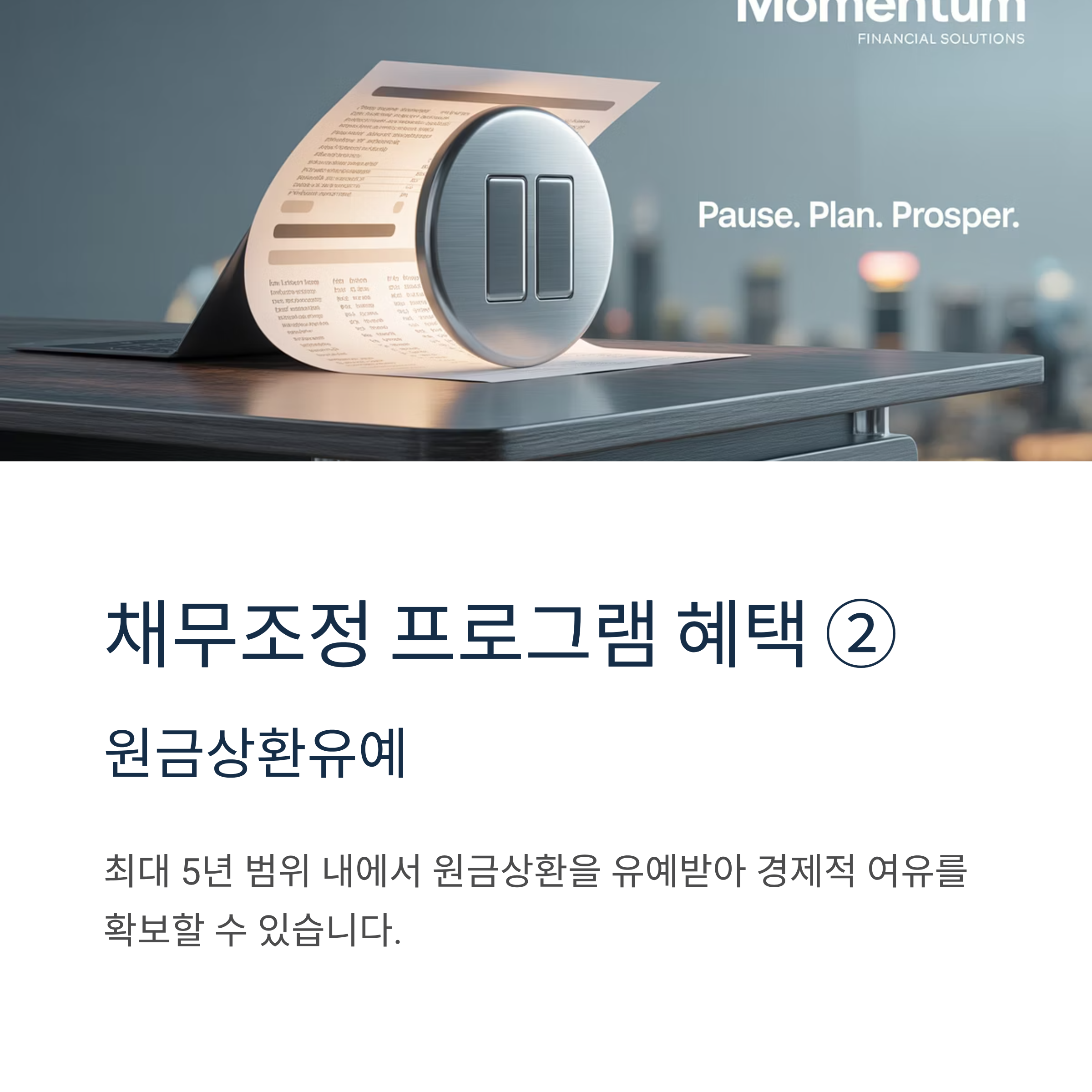 원금상환유예: 채무자가 원할 경우 최대 5년 범위 내에서 원금상환을 유예받을 수 있어 경제적 여유를 확보할 수 있습니다.