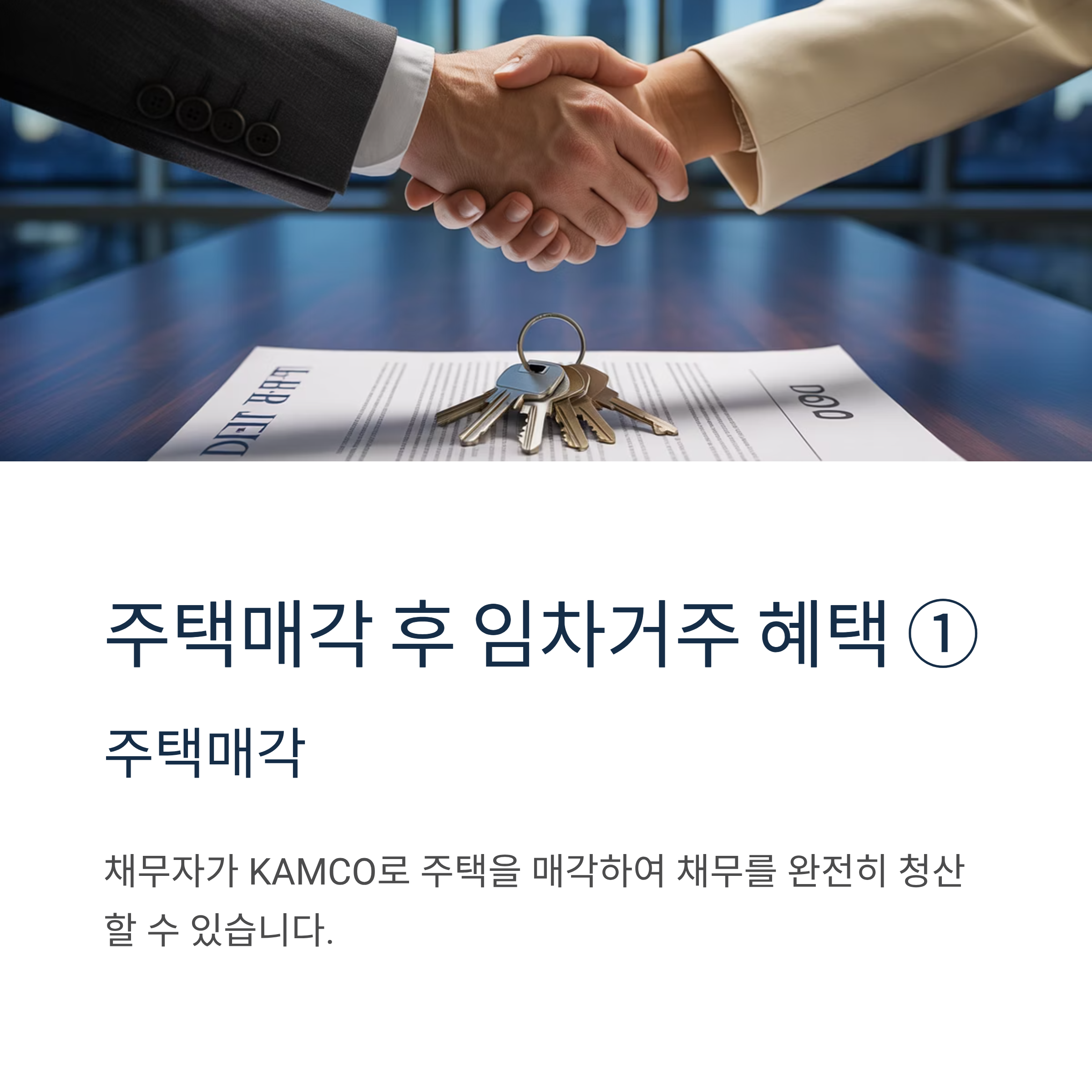- 주택매각: 채무자가 KAMCO로 주택을 매각하여 채무를 청산할 수 있습니다.