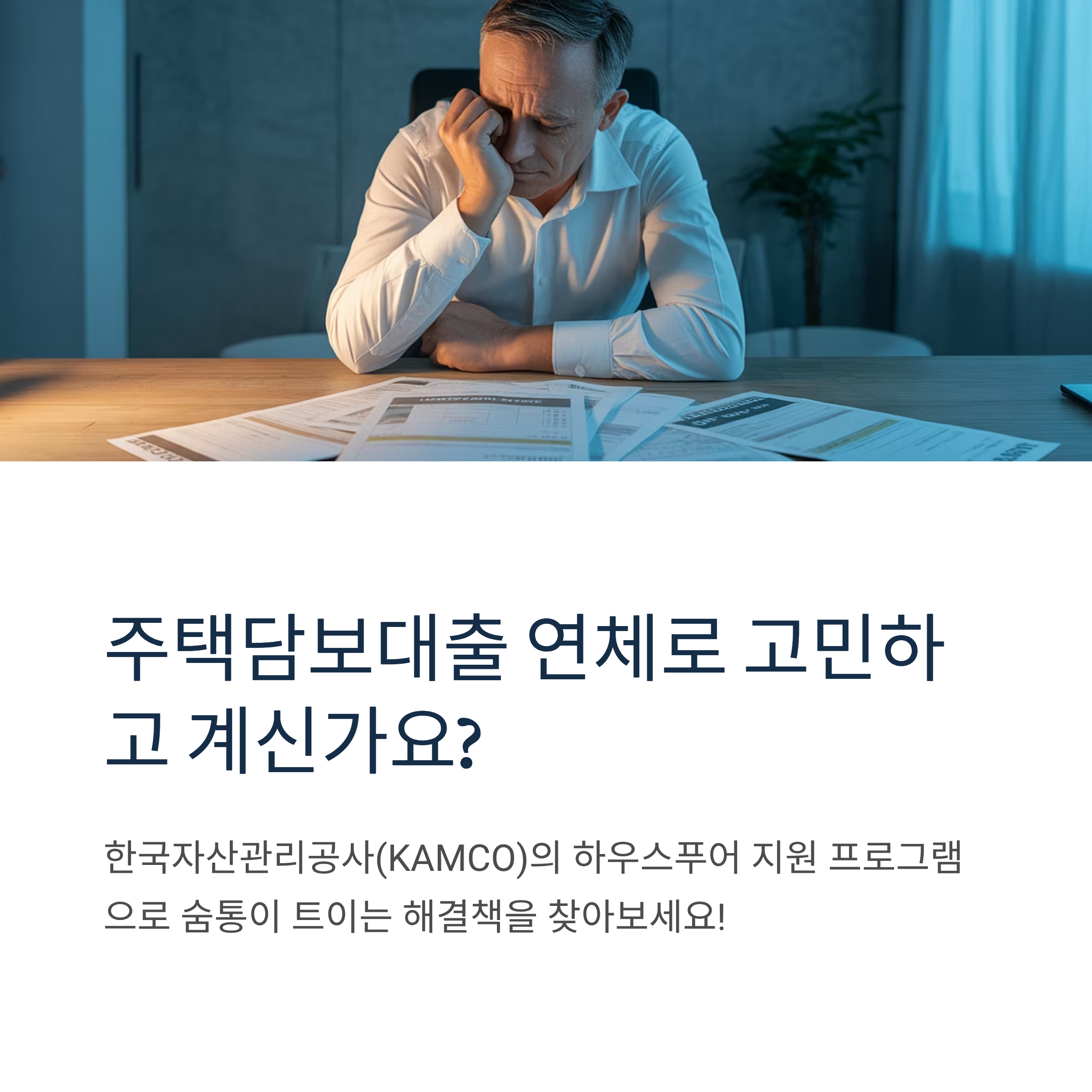 채무상환이 어려운 경우, 주택을 KAMCO에 매각하고 최장 11년간 임차거주할 수 있는 혁신적인 프로그램입니다.