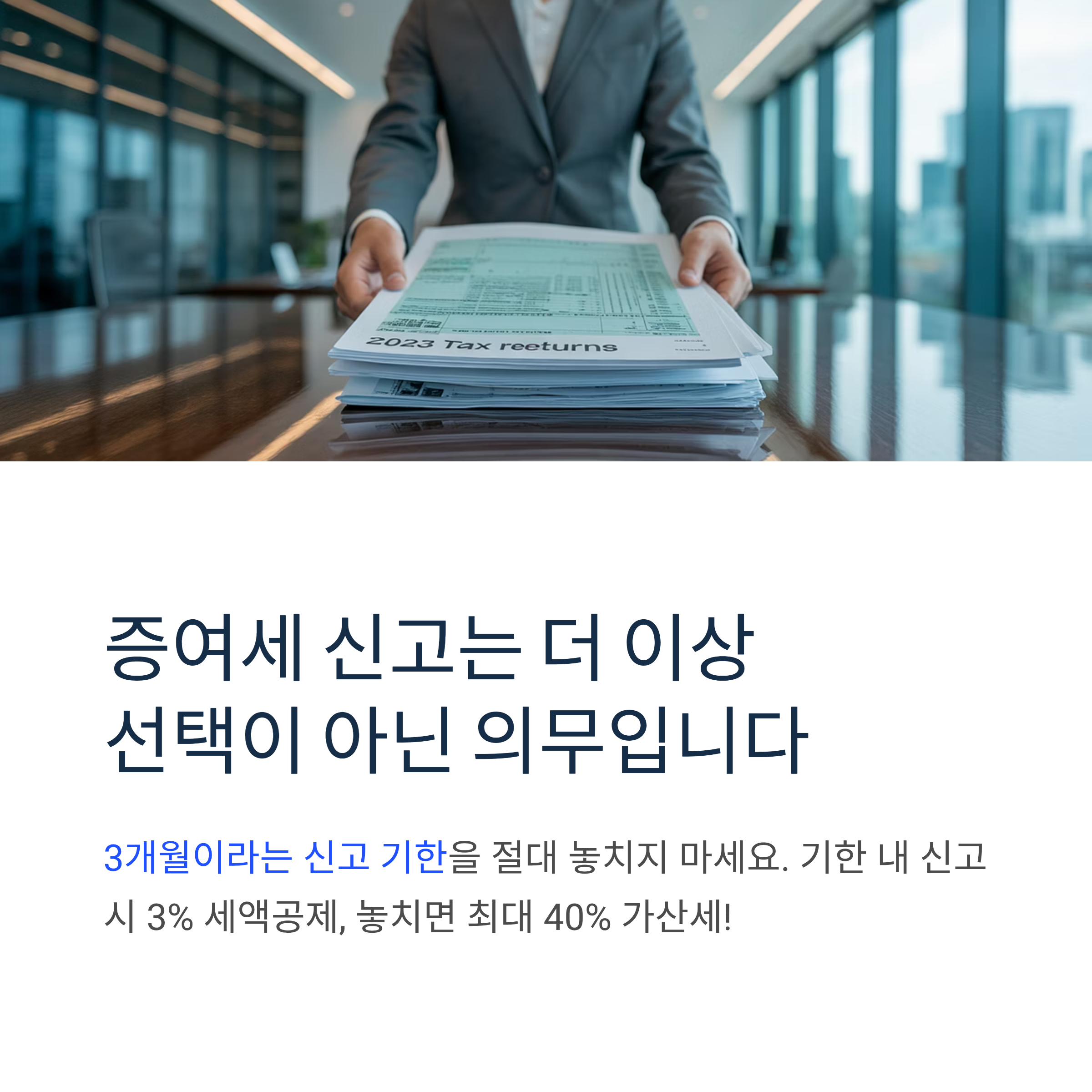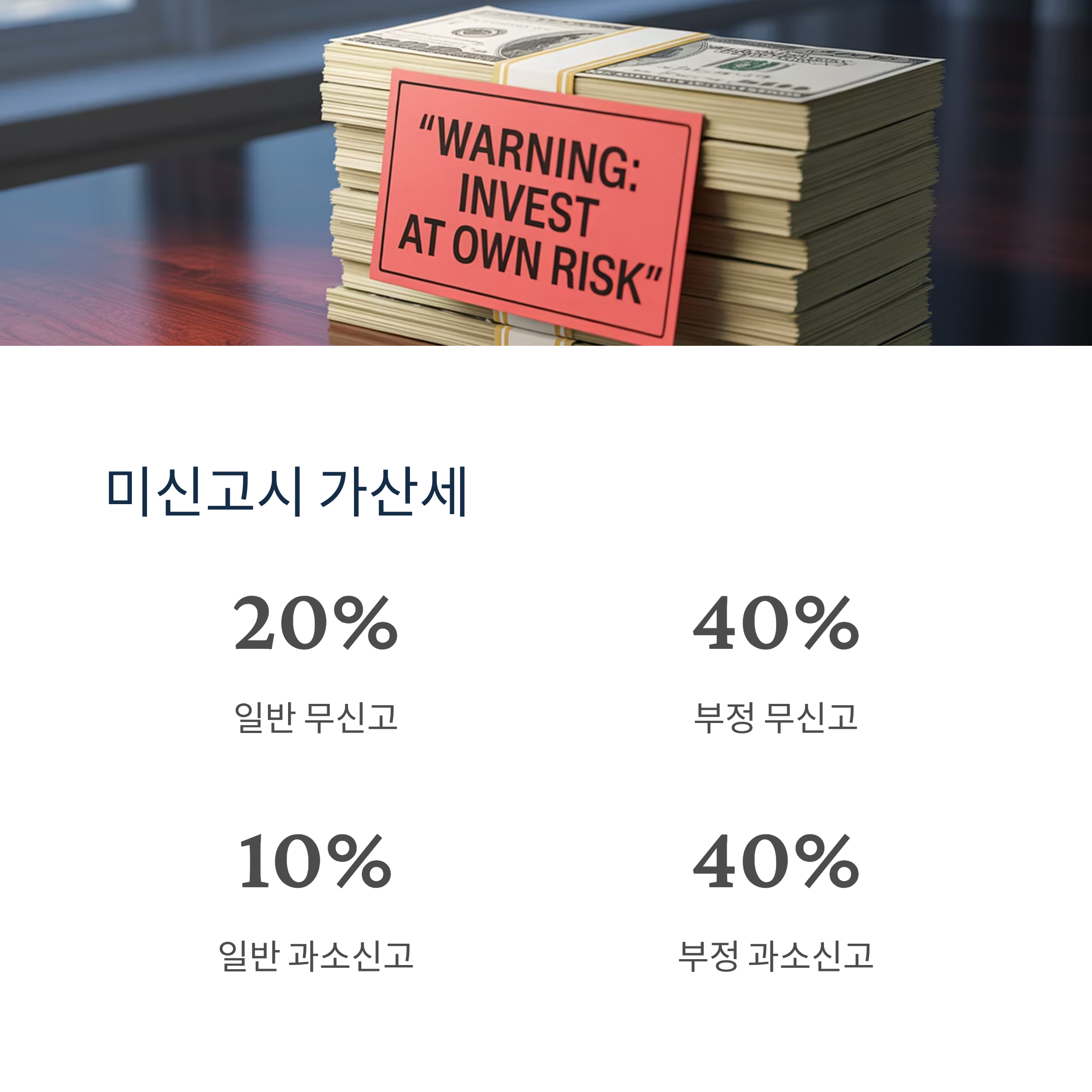 증여세를 신고·납부를 하지 아니하면 내야 할 세금의 40%까지 추가부담이 됩니다.