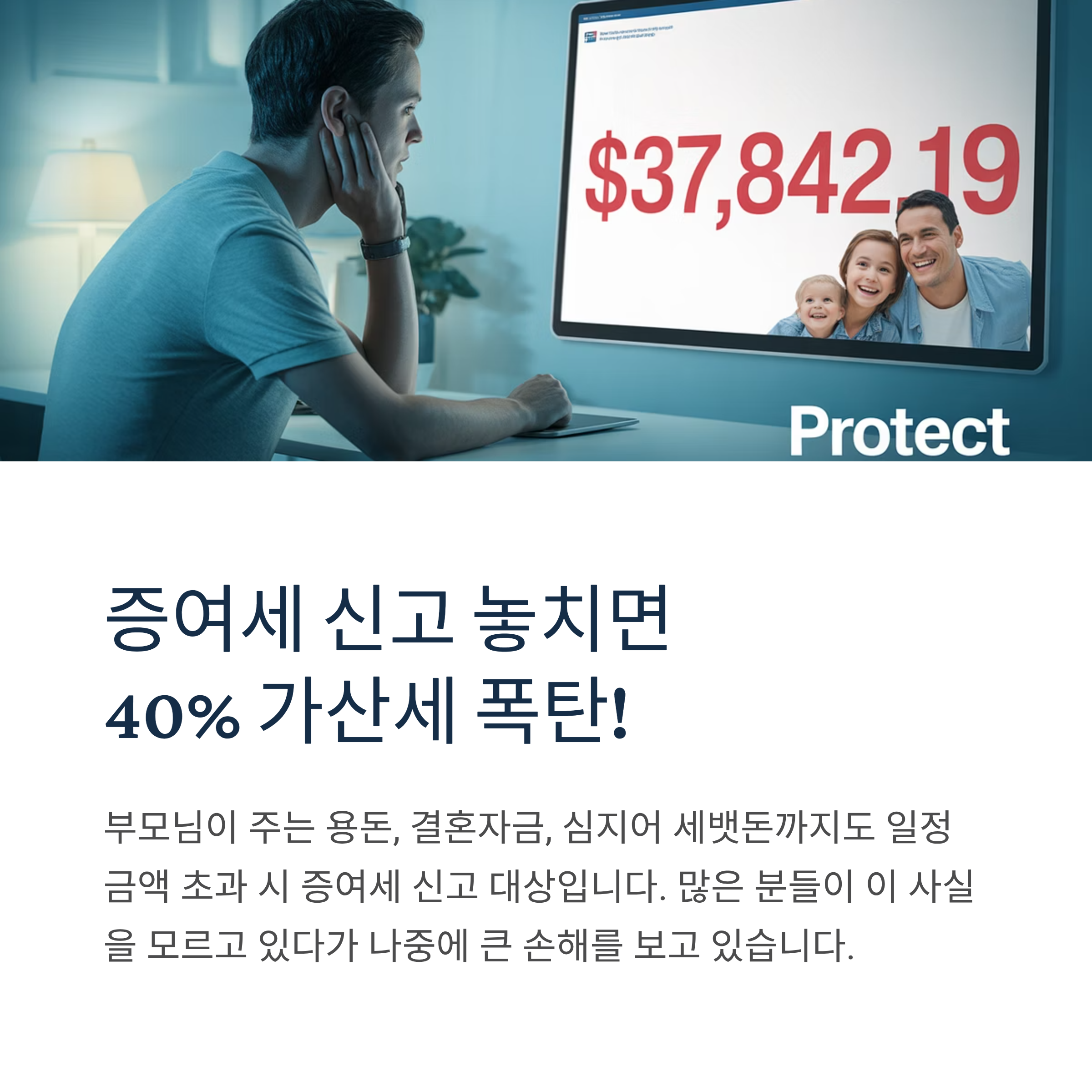 "부모님께 용돈 드렸을 뿐인데, 증여세 고지서가 날아왔어요!"매년 수많은 가정에서 겪는 황당한 상황입니다. 가족끼리 당연히 주고받는 돈이 세금 폭탄으로 돌아오는 경우가 급증하고 있습니